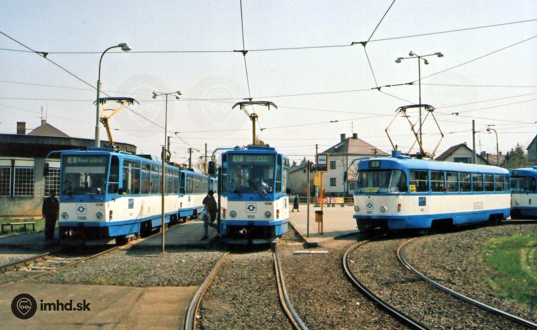 Električky T6A5 a T3 v obratisku Poruba Vřesinská.