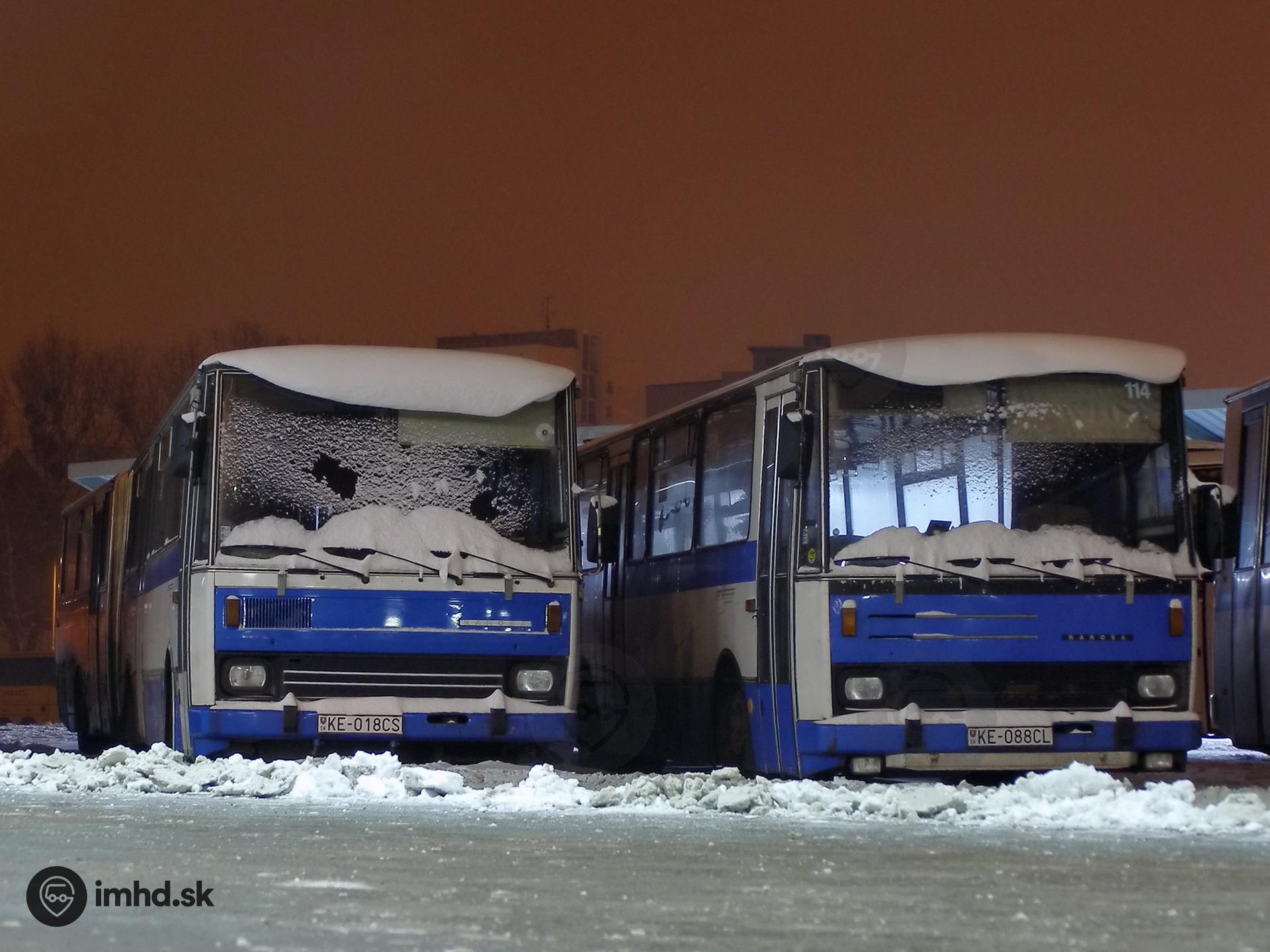 Silvestrovský pohľad na Karosy KE-018CS (pôvodom zo Slovtransgazu) a moldavskú KE-088CL.