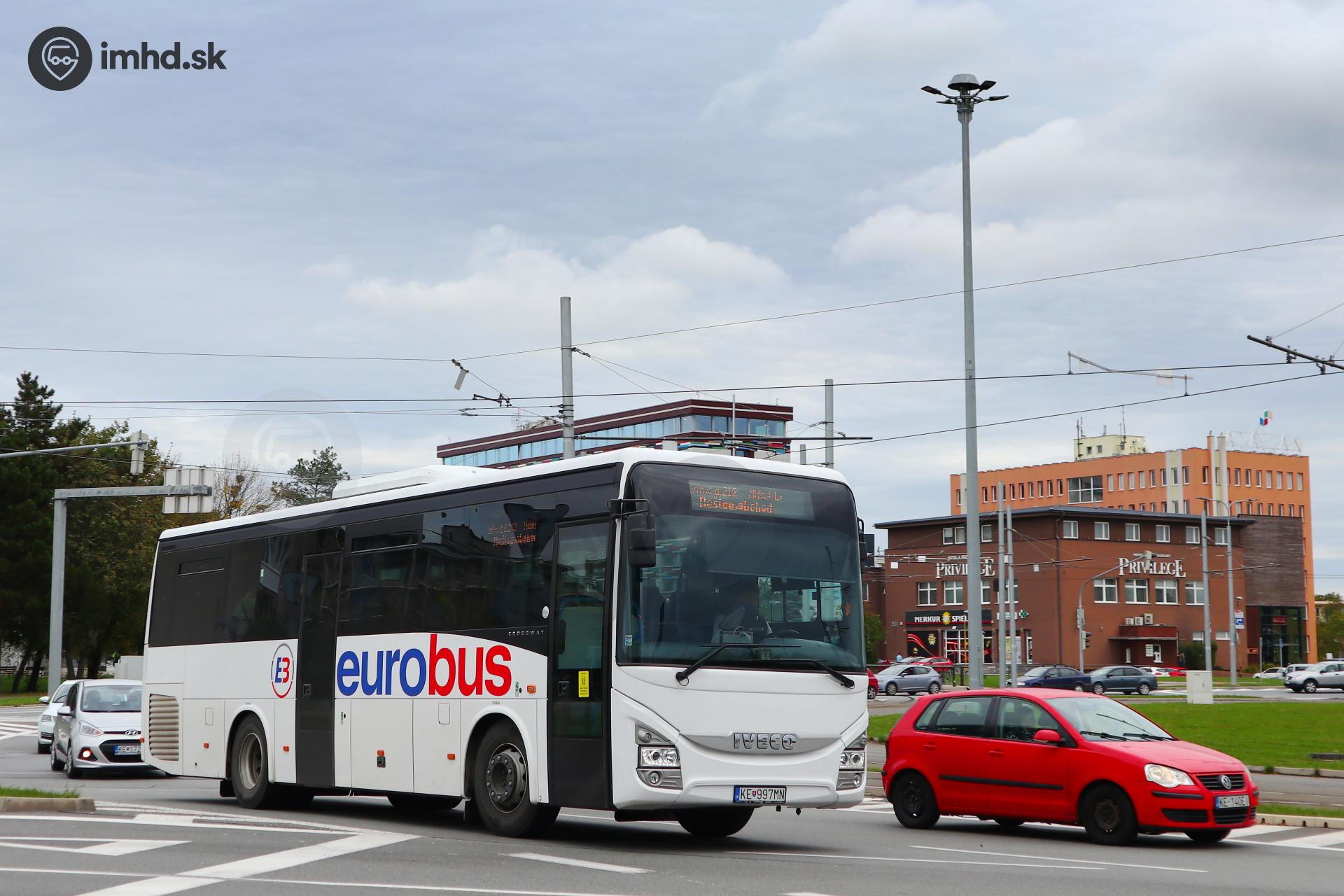 Iveco Crossway 10.8M #KE-997MN prechádza okružnou križovatkou pri svojej ceste do Rešice.