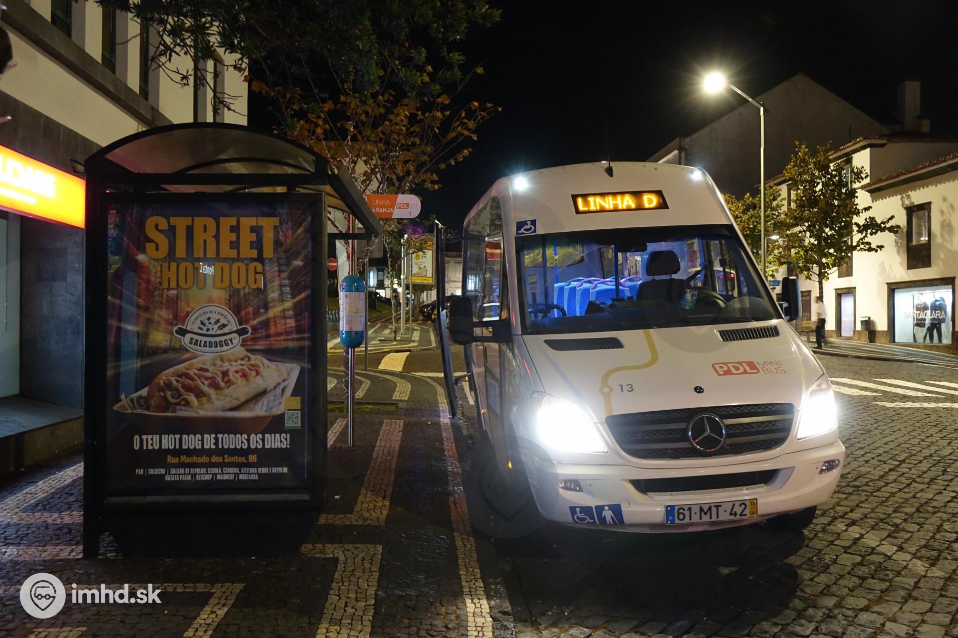 Mercedes Benz Sprinter na konečnej zastávke v centre Ponta Delgada