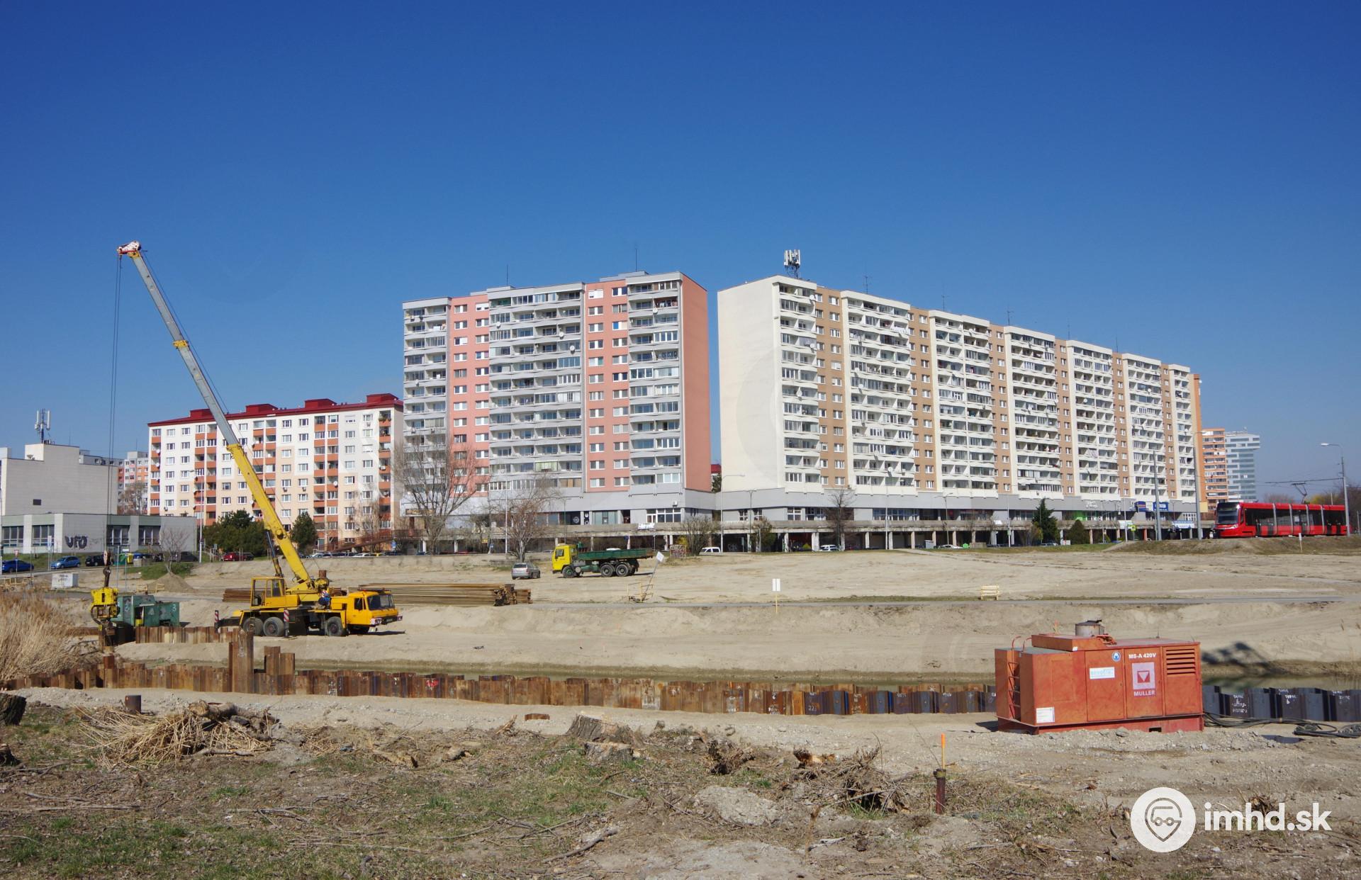 Pokračujúca výstavba električkovej trate v Petržalke (13.4.2022)