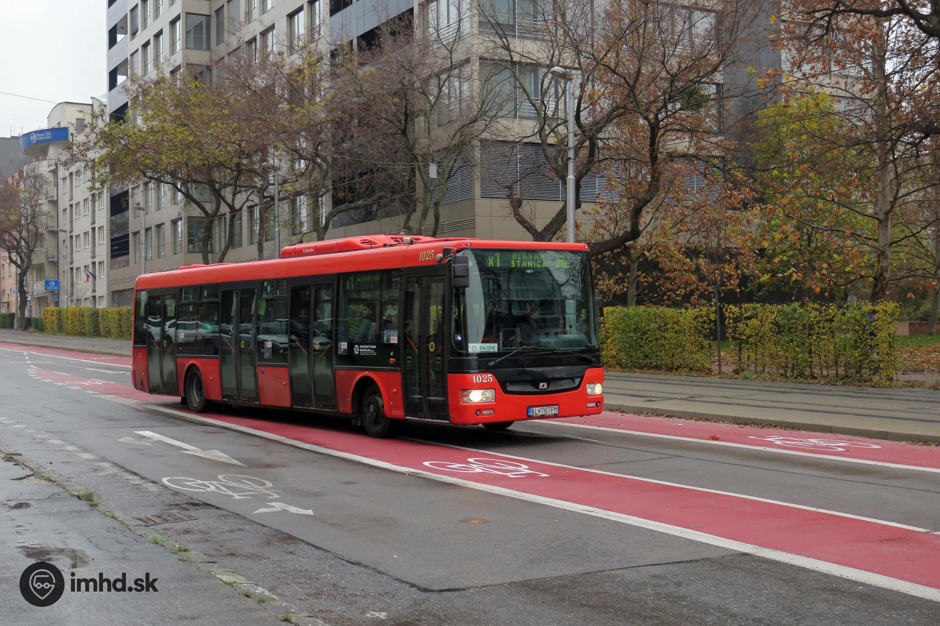| #1025 na linke náhradnej dopravy za električky počas prerušenej premávky medzi Hlavnou stanicou a Radlinského ul. | |