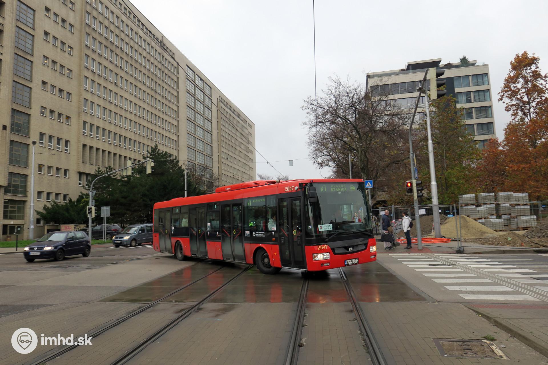 #2047 odbočuje na Mýtnu ul. a ďalej na Blumentál. Opačným smerom pôjde cez Radlinského, Kollárovo námestie, Námestie Slobody a Štefanovičovu ul. na Hlavnú stanicu.