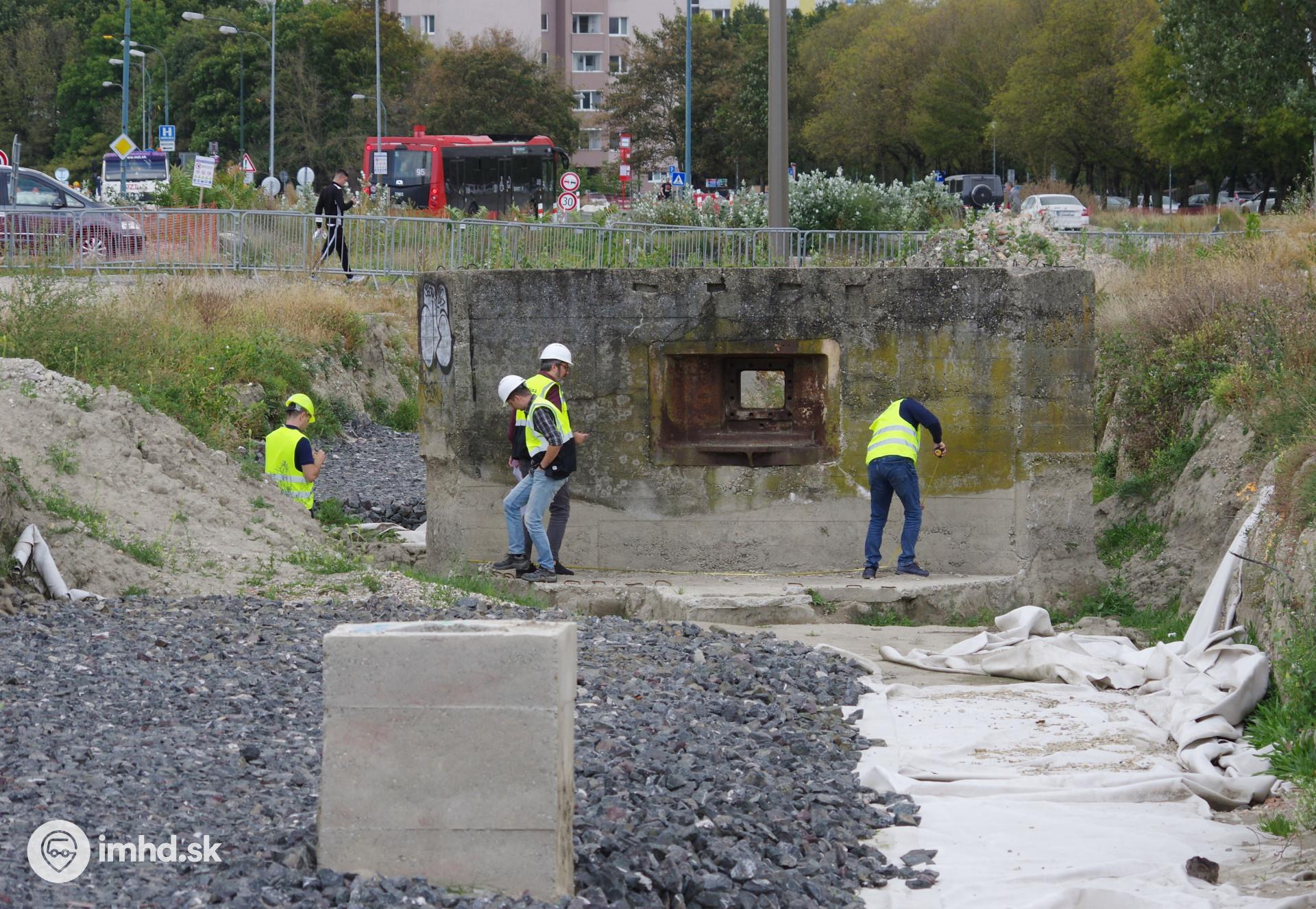 Premeriavanie protitankovej steny, ktorá je stále na pôvodnom mieste. | |