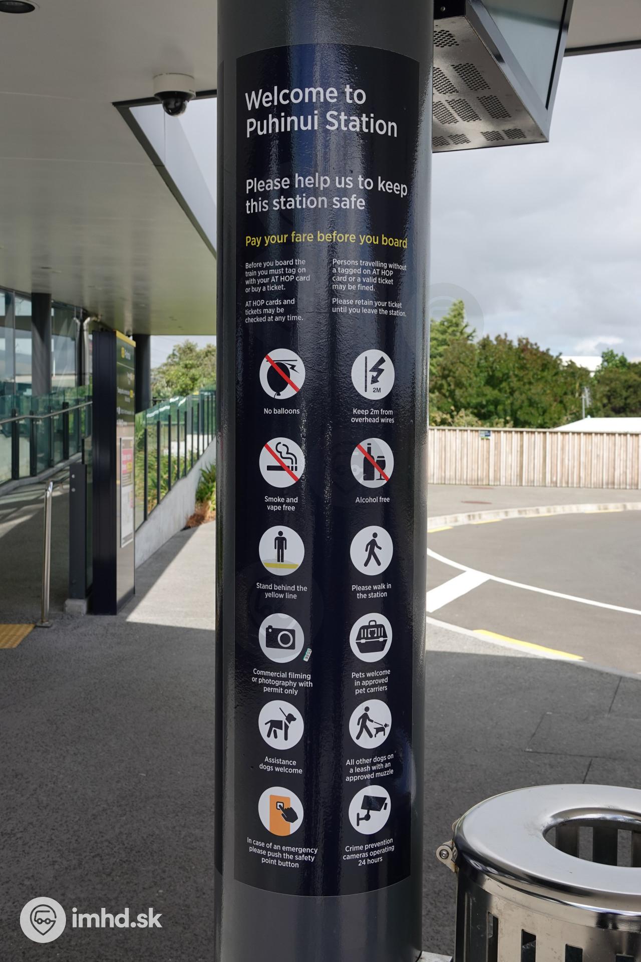 Piktogramy na autobusovom terminále v Puhinui.