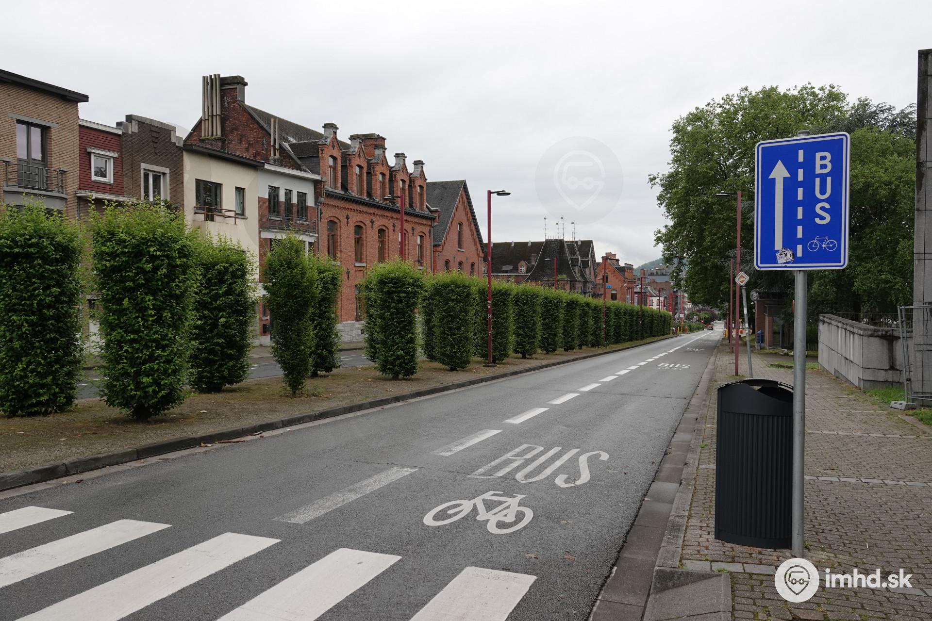 Vyhradený jazdný pruh pre autobusy a cyklistov na pomernej úzkej dvojpruhovej ceste