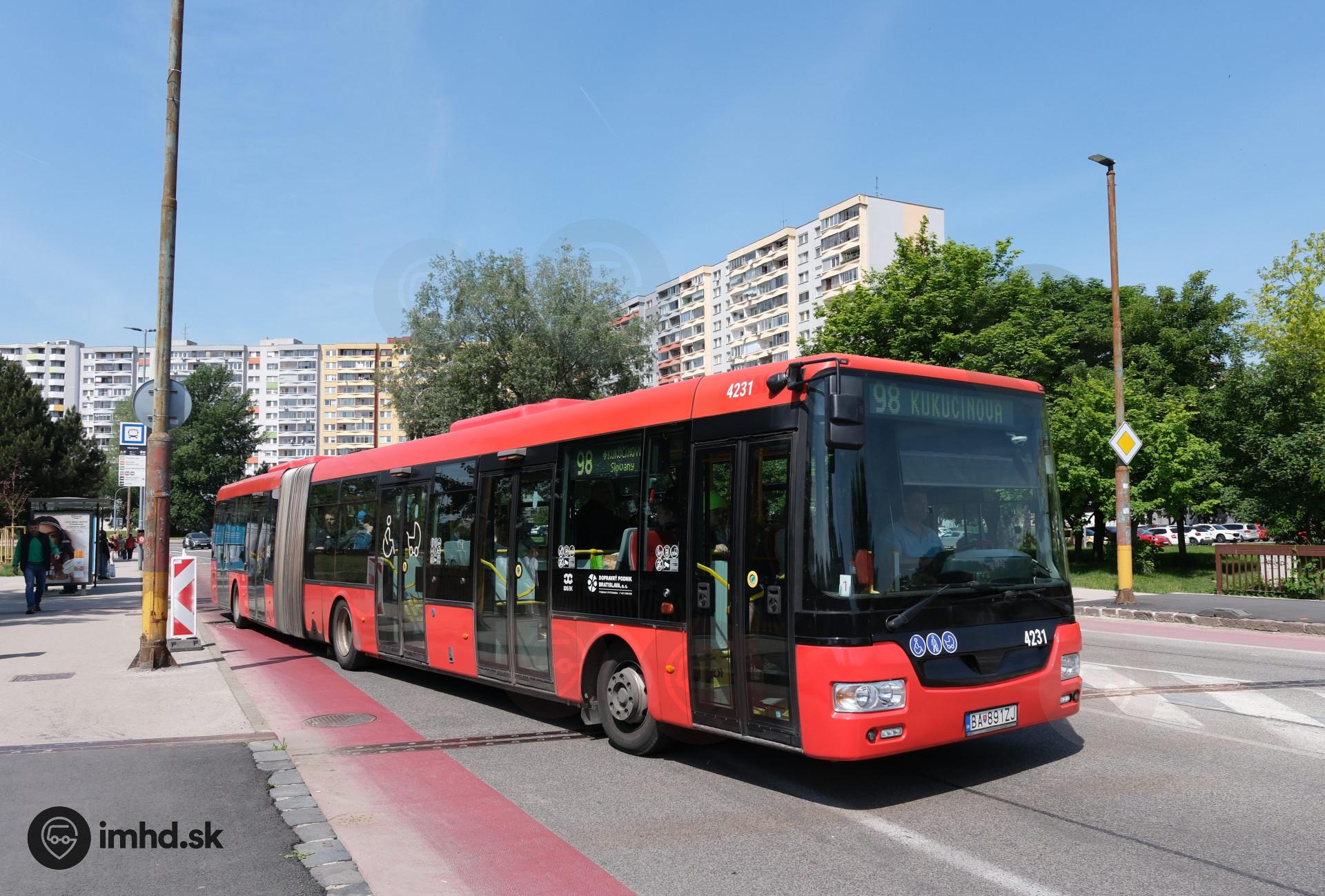 #4231 na obchádzkovej trase linky 98 počas prestavby Kutlíkovej ulice