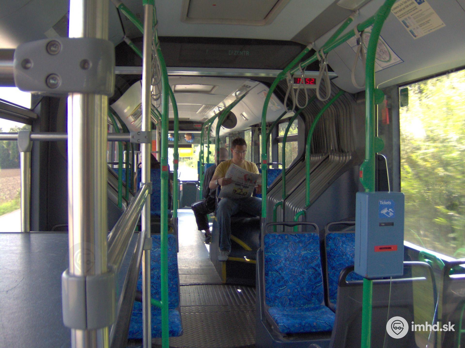 Interiér kĺbového autobusu na linke 635 spájajúcej Freising s letiskom