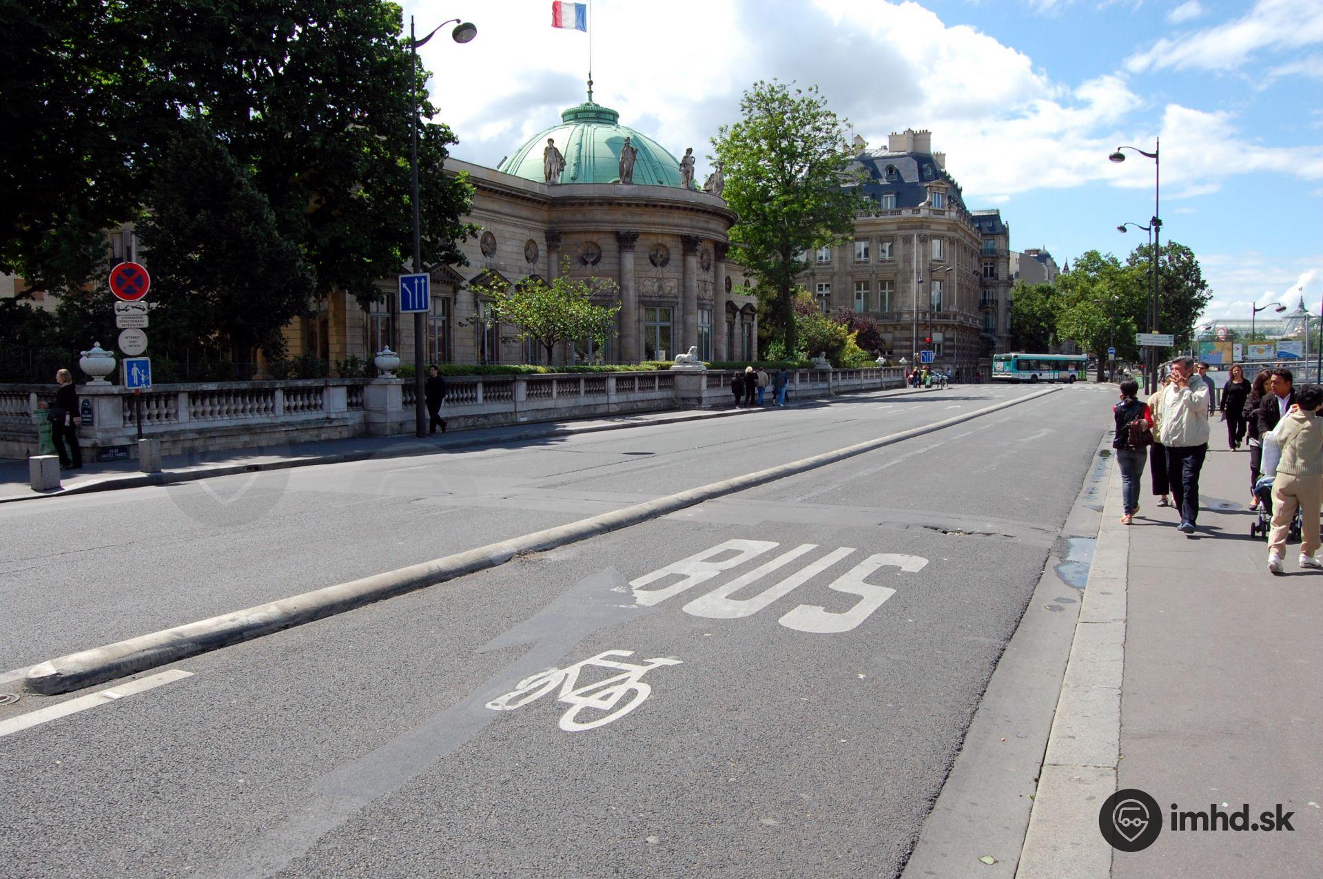 Vyhradené jazdné pruhy pre autobusy a bicykle sú takmer na všetkých uliciach Paríža. Tento vyhradený pruh je od ostatnej časti cestnej komunikácie oddelený betónovým výstupkom, čím sa zabraňuje vstupovaniu osobných automobilov medzi autobusy a cyklistov.