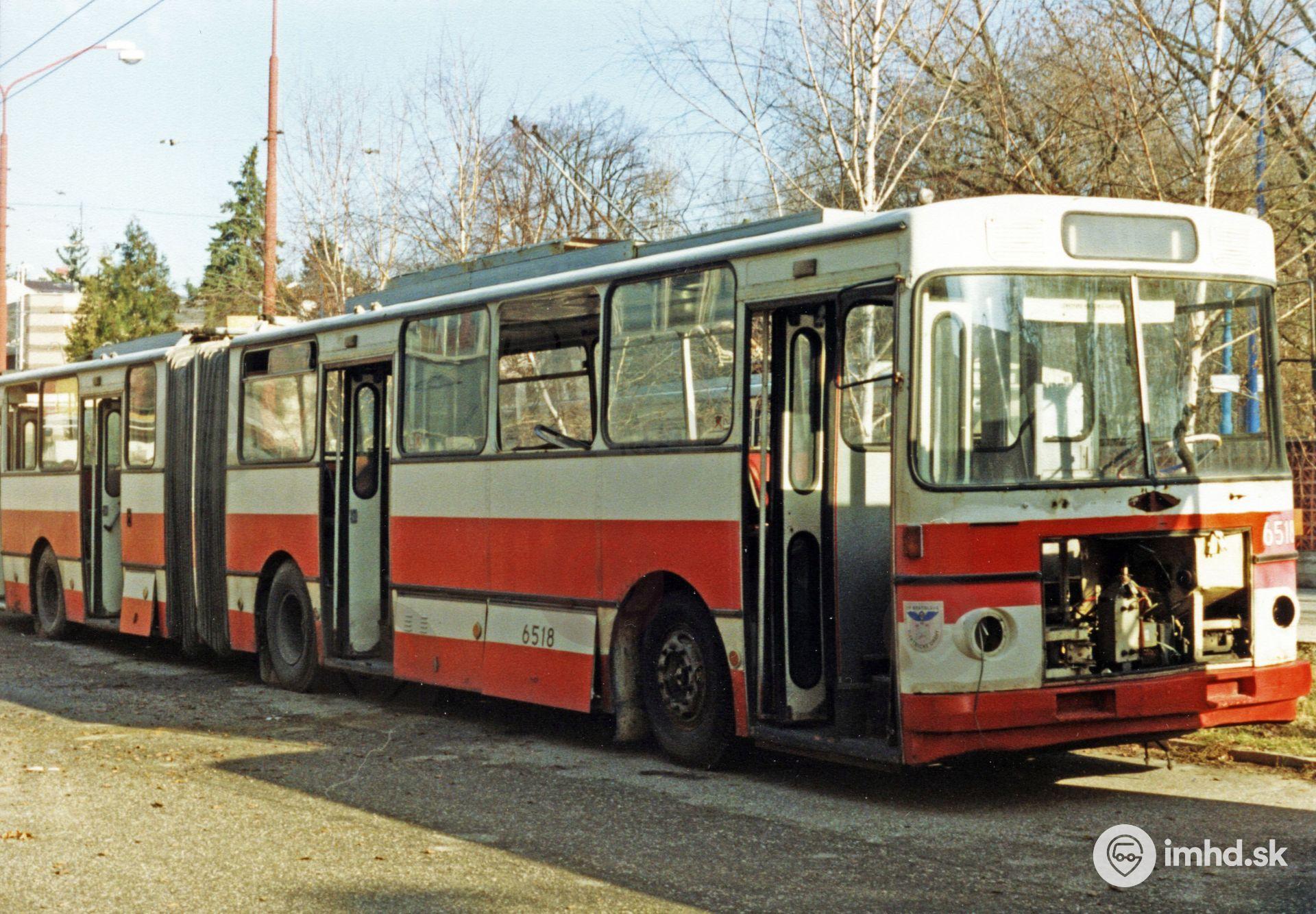 Jeden z posledných dvoch zošrotovaných trolejbusov Škoda - Sanos S200Tr #6518 vo vozovni Hroboňova.