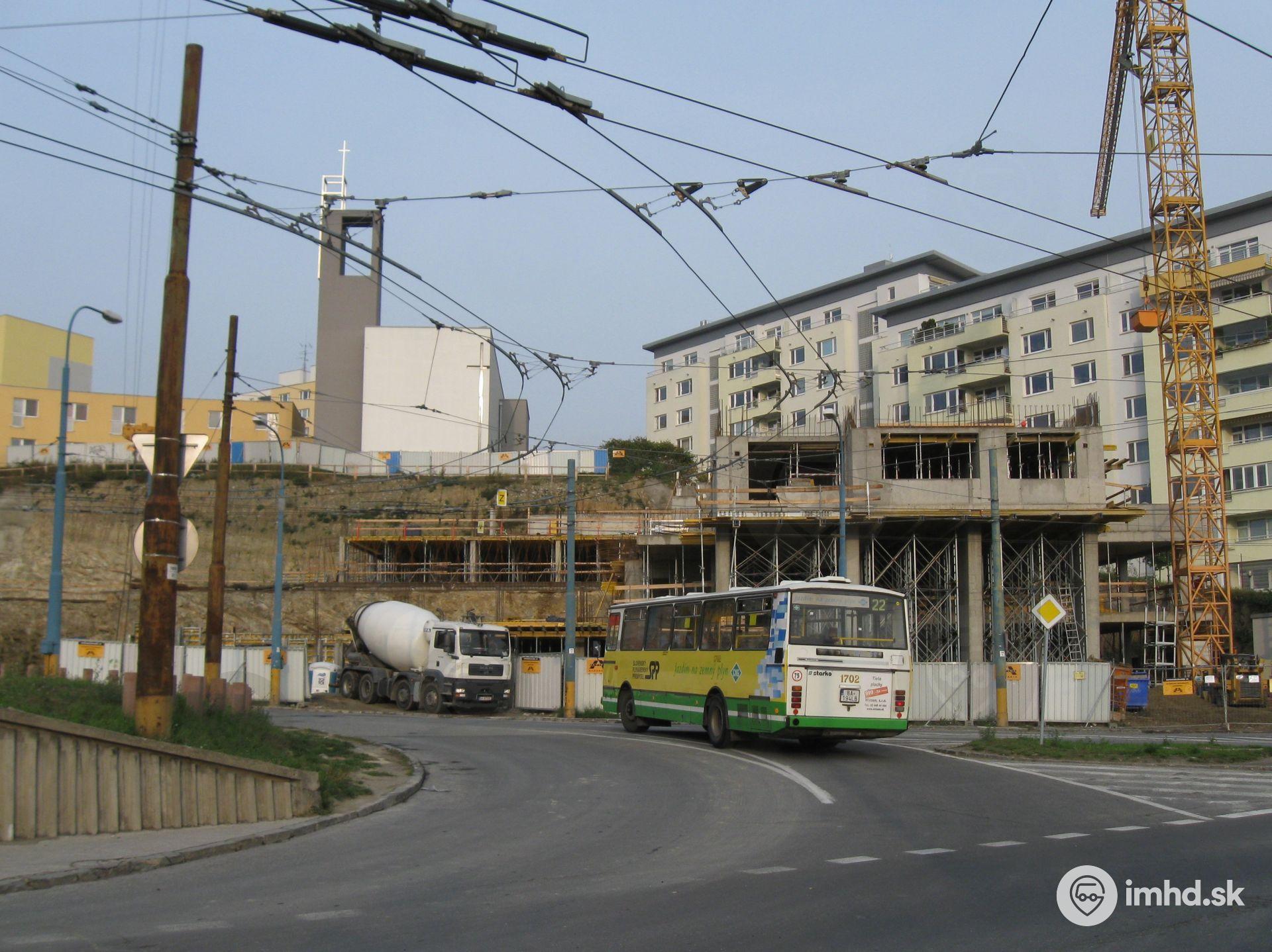 #1702 prechádza popri stavenisku pod kostolom na Kramároch