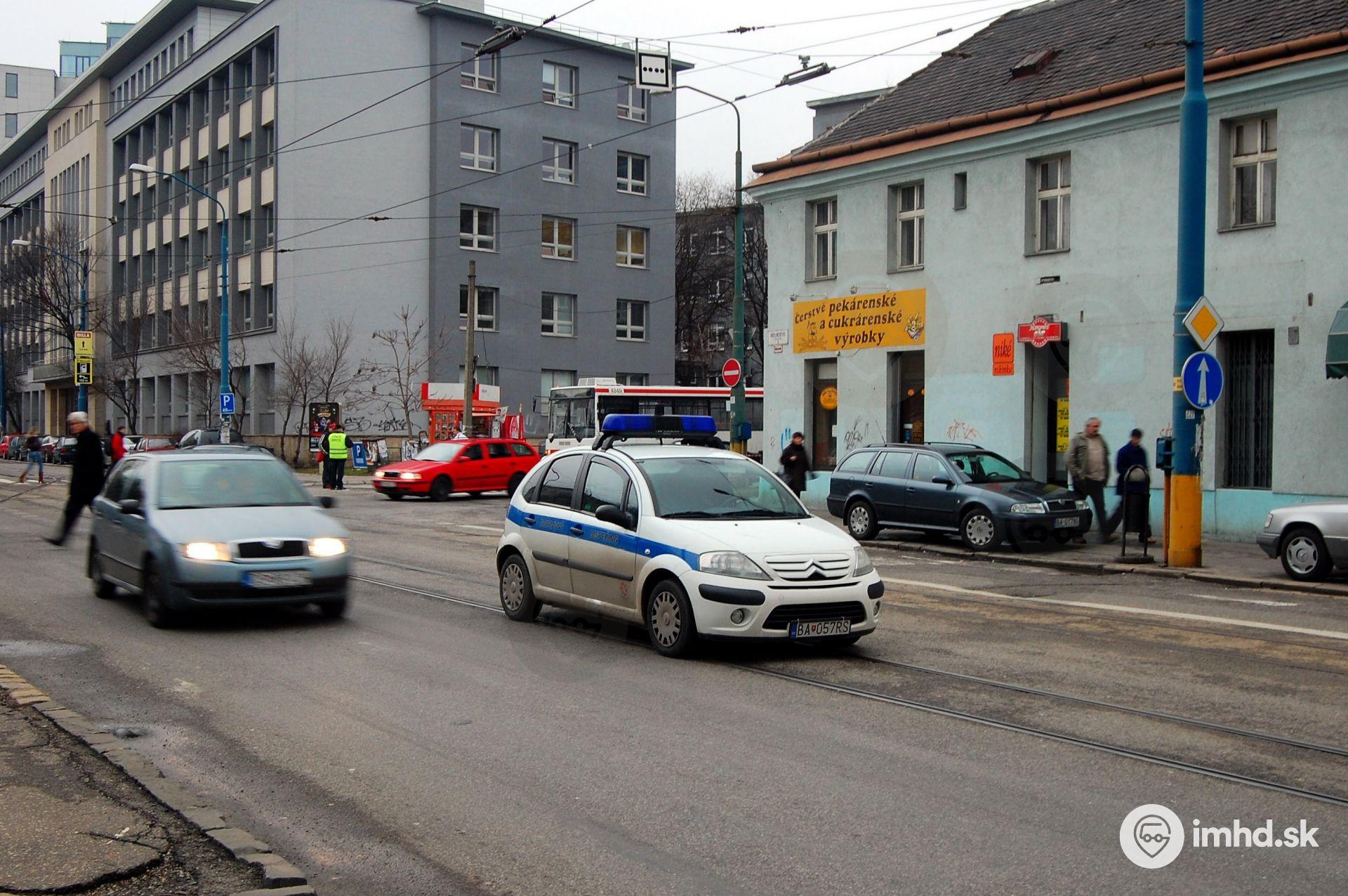 Dispečerský Citroën C3 blokuje prejazd električiek na Račiansku radiálu kvôli odklonu z dôvodu vykoľajenia električky #7069.