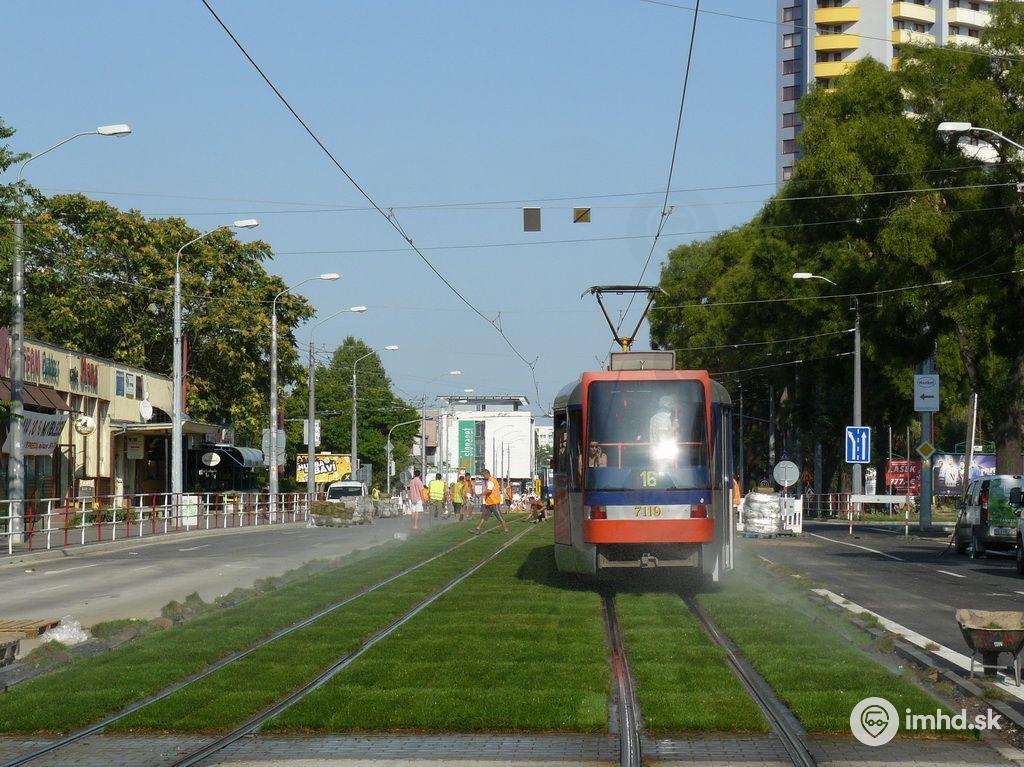 #7119 sa osviežuje na trávnatej časti trate na Záhradníckej ulici.