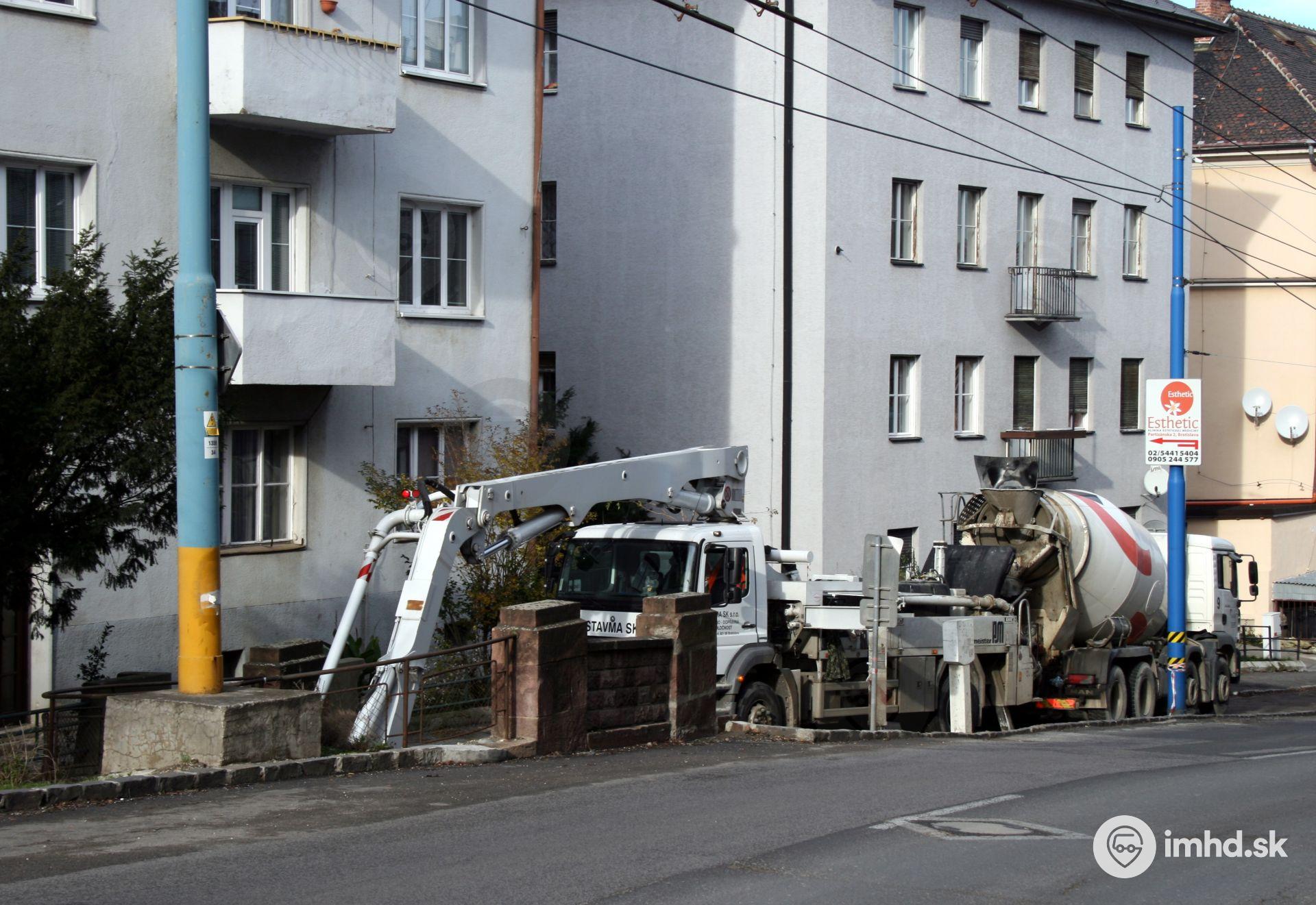 Domiešavač a mobilná pumpa počas betónovania podlahy v núdzovom východe z tunela.