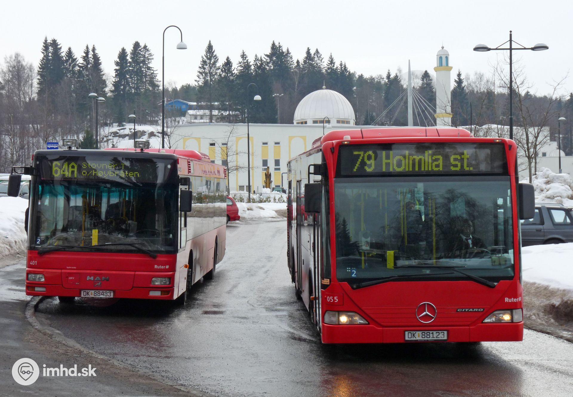 MAN NL 263 a Mercedes-Benz O 530 Citaro v pozadí s mešitou vo výstavbe.