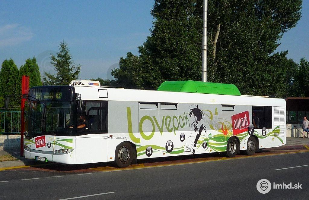 #1220 je druhým Solarisom s reklamou Aupark, tentokrát v zeleno-bielom prevedení.
