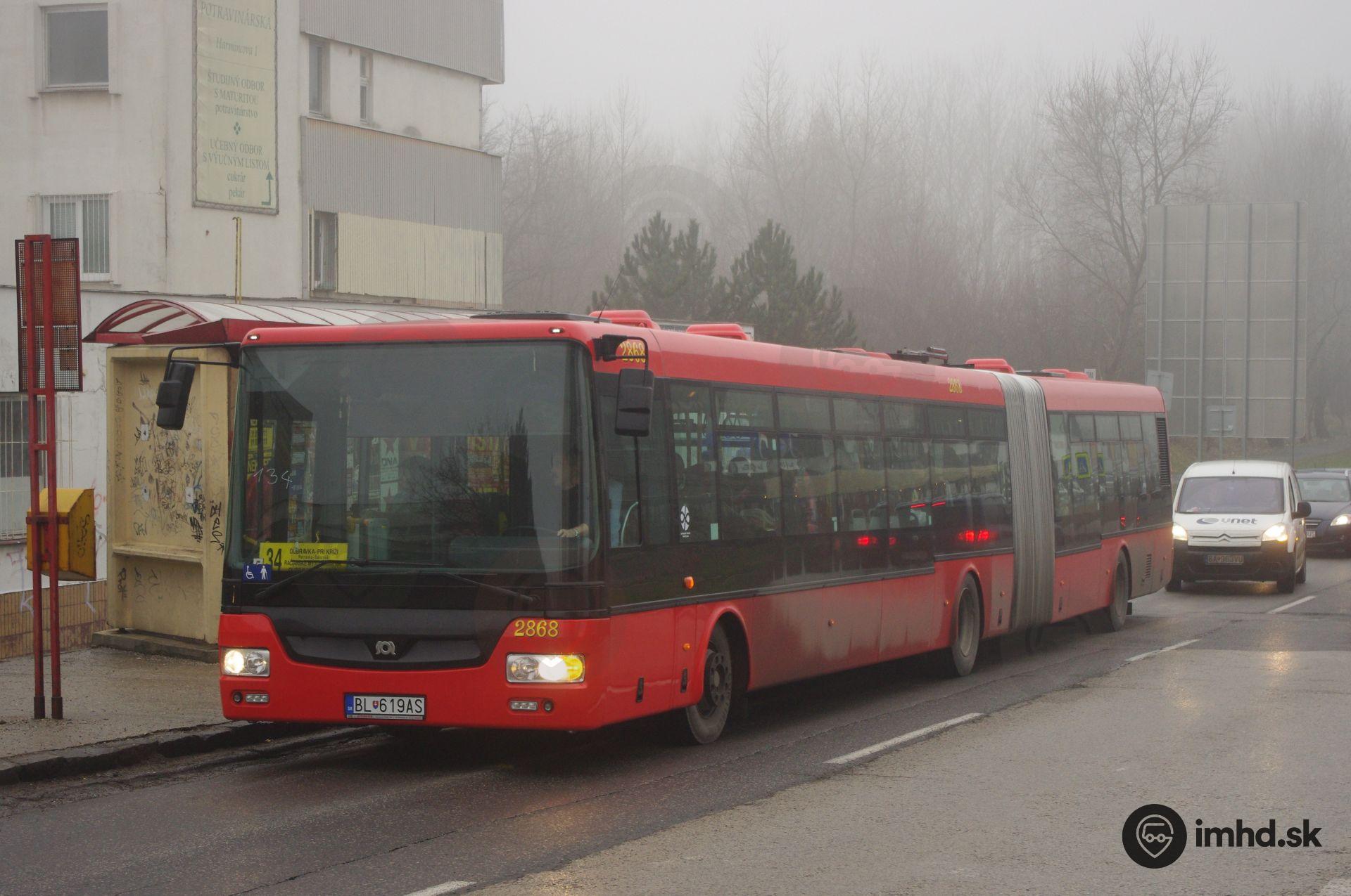 #2868 bol zaradený do premávky bez elektronických transparentov a s výrobným číslom napísaným na čelnom skle.
