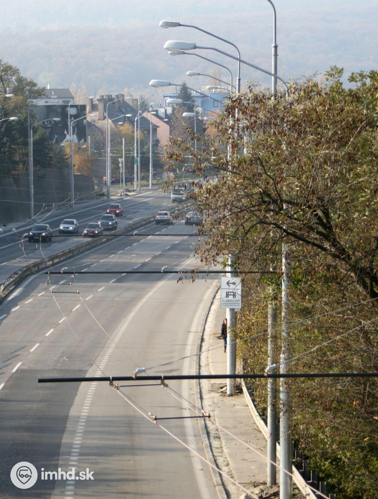 Trolejové vedenie na Brnianskej prechádza cez 4 jazdné pruhy.