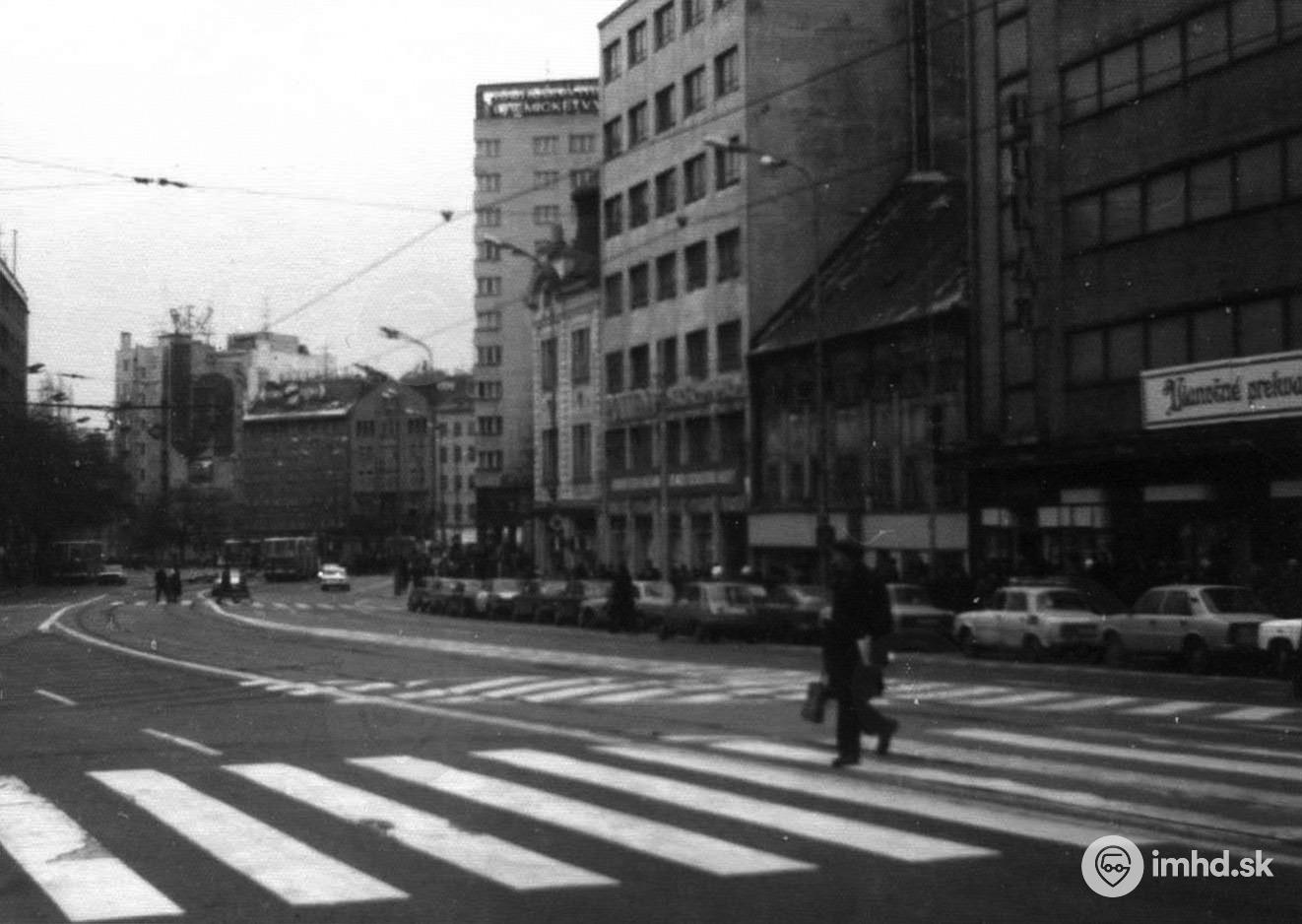 Námestie SNP v čase, keď cez neho jazdili všetky električkové linky na Hlavnú stanicu.