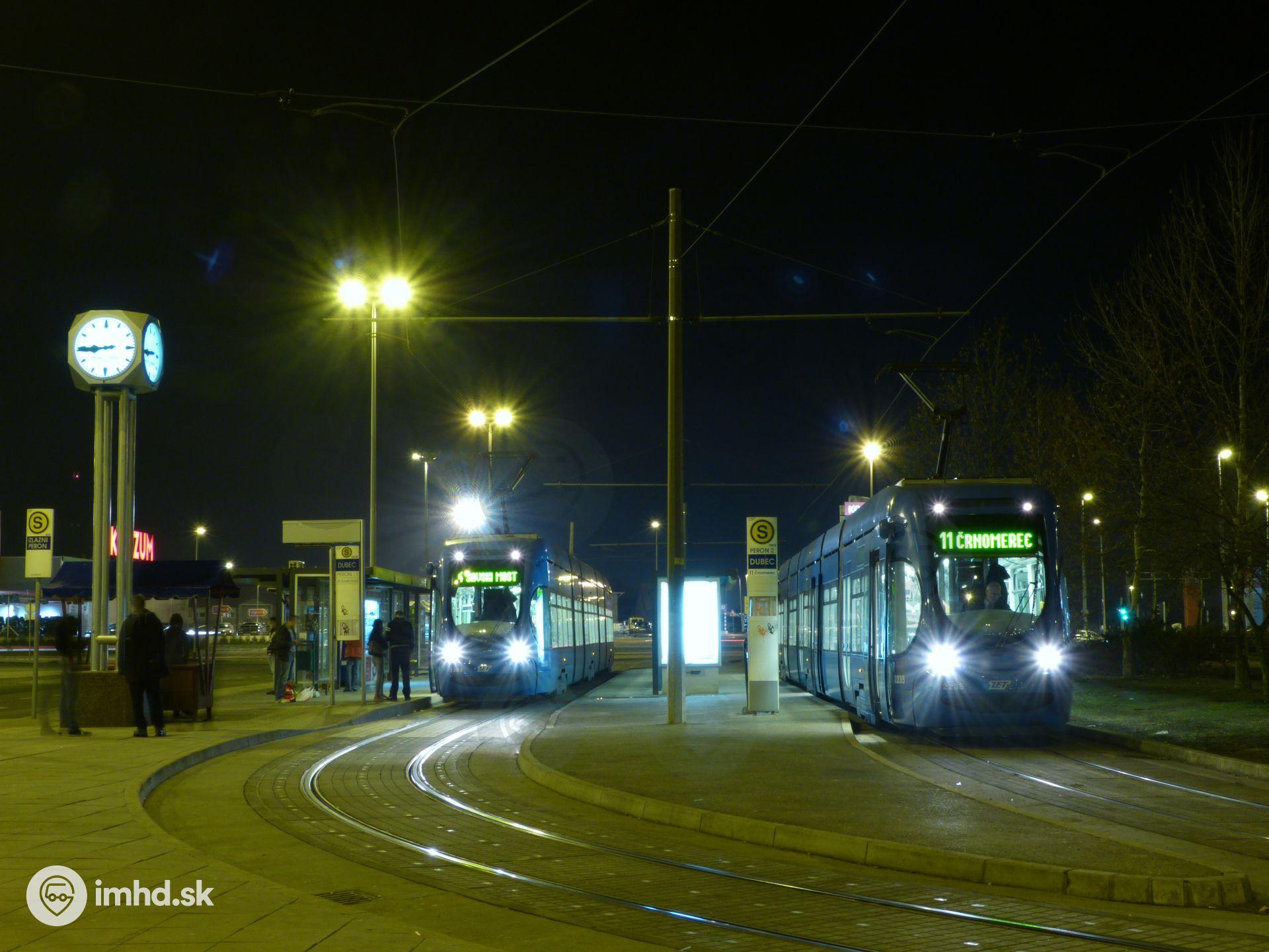 Električky Crotram TMK 2200 v prestupnom termináli Dubec