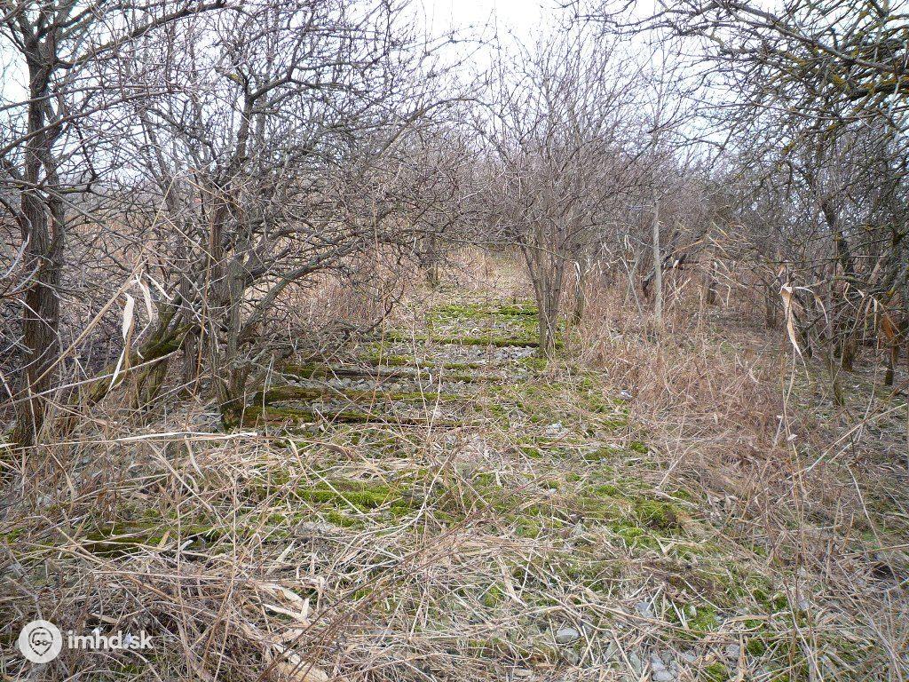 Zvyšky trate vo vysokej tráve a v obkľúčení divoko rastúcich stromov. Dostať sa tu počas vegetačného obdobia je takmer nemožné.