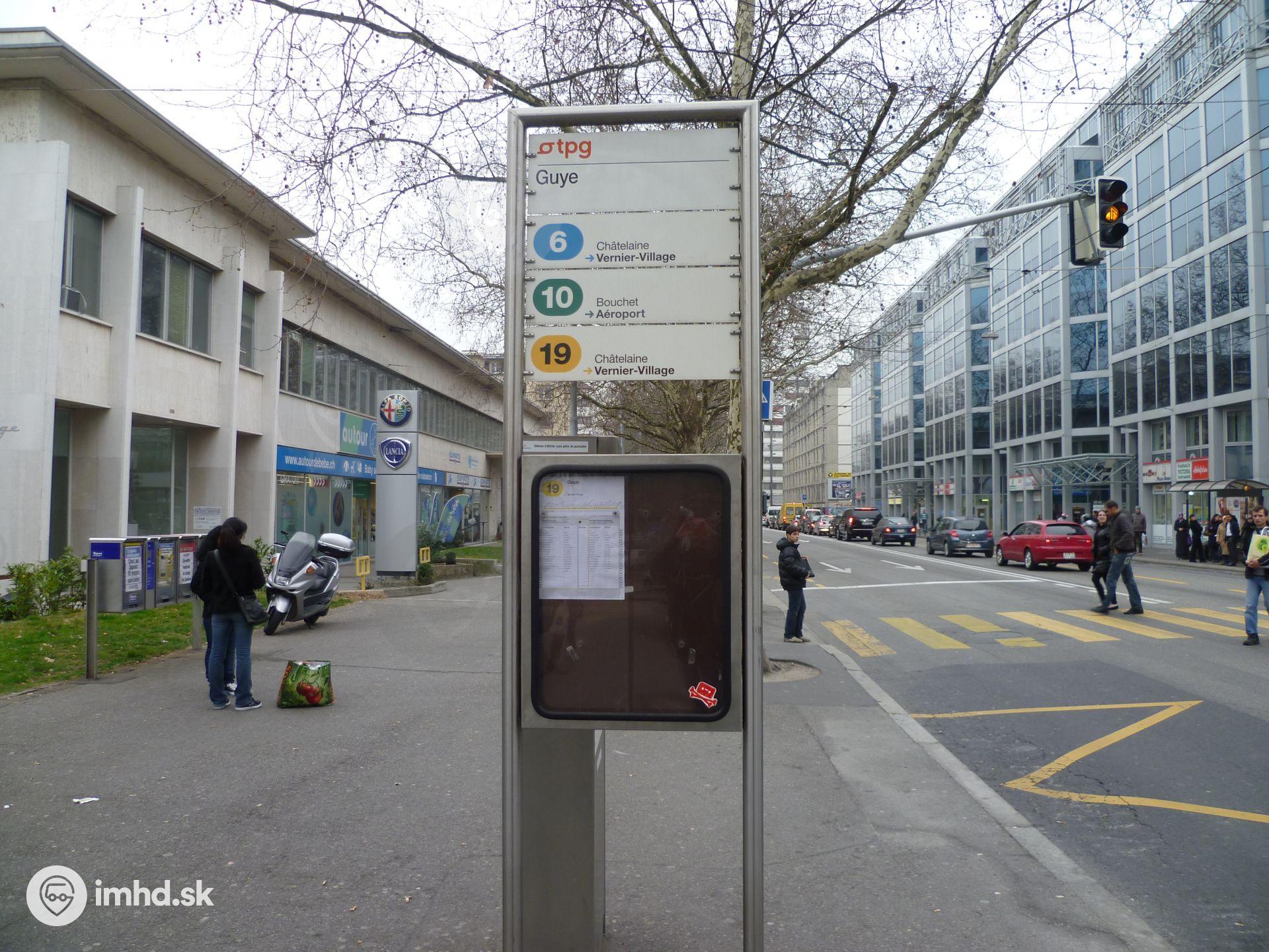 Typický starší predstaviteľ zastávkového označníka v Ženeve.