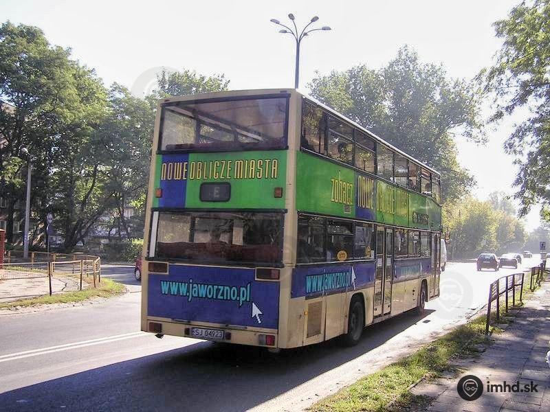 MAN SD 202 #177 sa pohýna zo zastávky na linke E Katowice - Jaworzno.