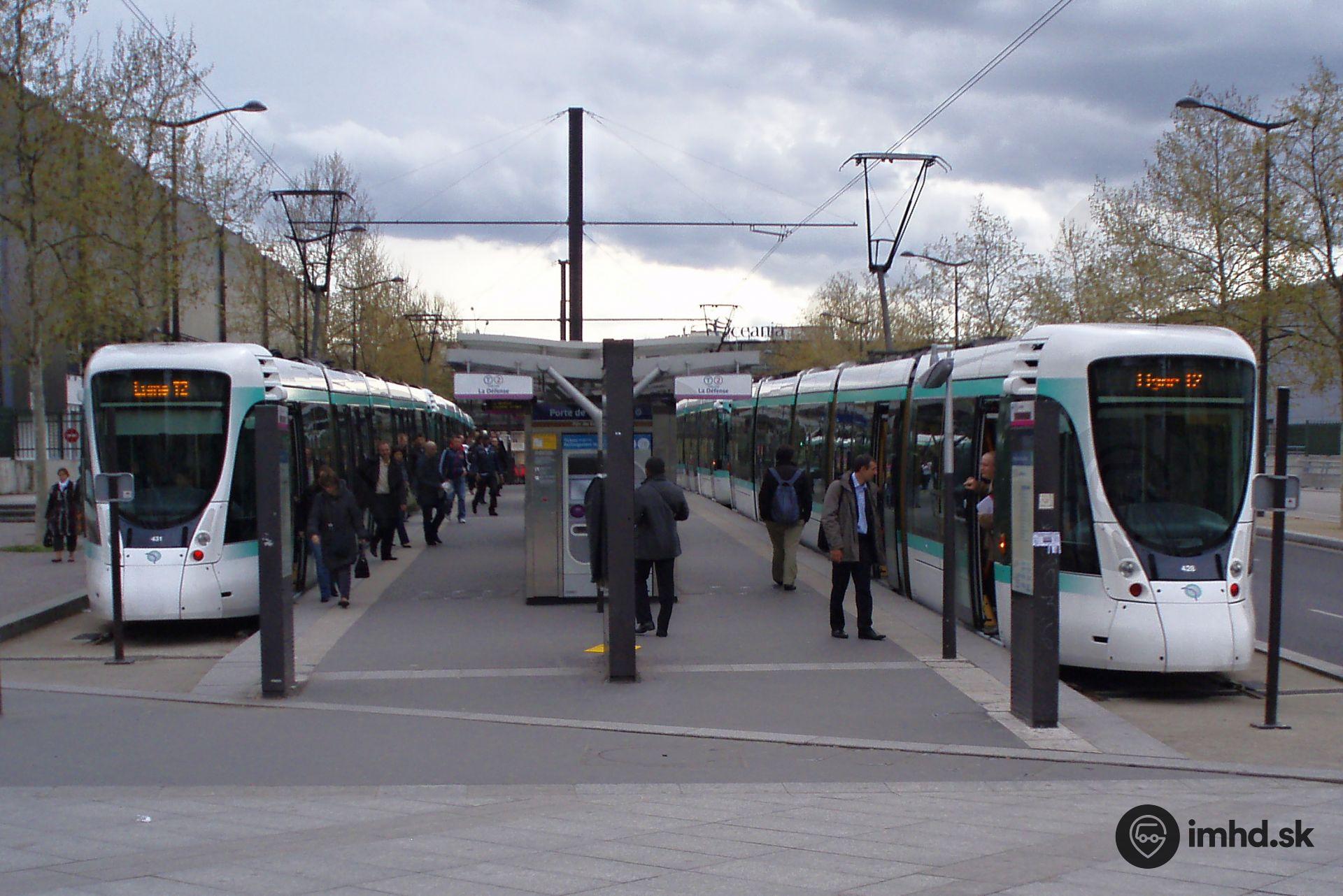Súpravy električiek Alstom Citadis 302 v konečnej zastávke Porte de Versailles.