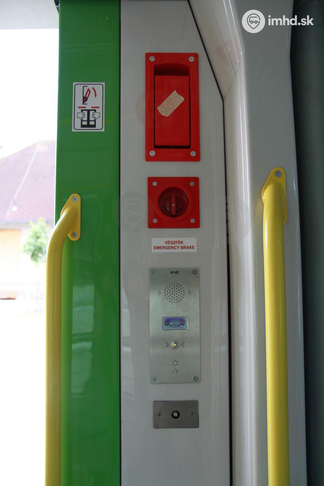 Núdzové otváranie dverí, záchranná brzda, komunikátor a tlačidlo pre zastávku na znamenie.