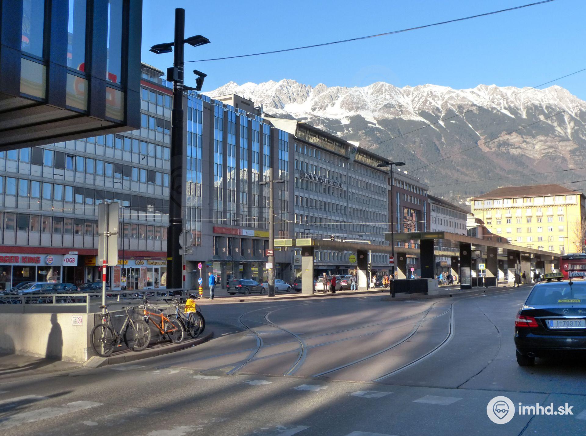 Predstaničný priestor so slepými električkovými koľajami pôvodne vedúcimi k stanici regionálnej električky Stubaitalbahn (STB). Zastávka STB sa premiestnila do priestoru na fotografii.