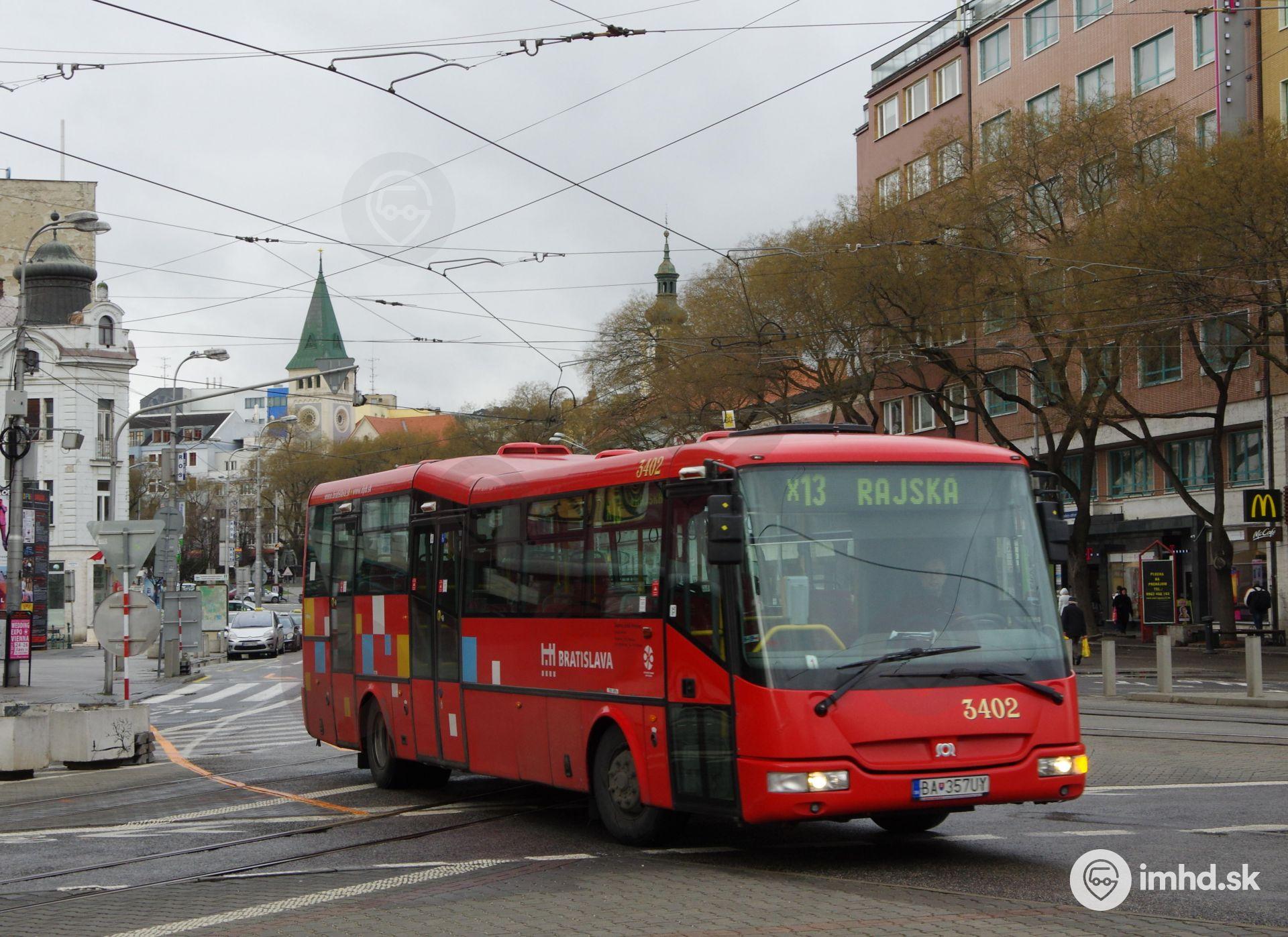 Linka X13 smerujúca na Rajskú.