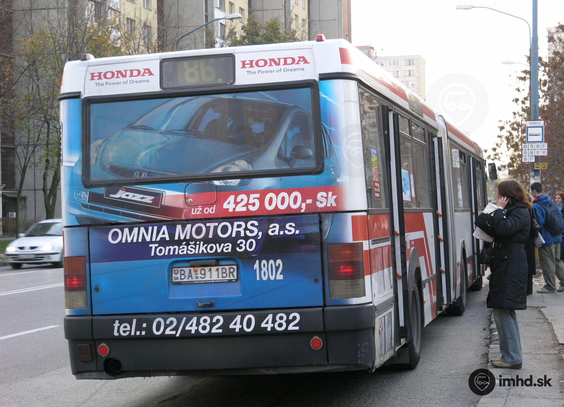 #1802 s reklamou na zadnom čele na zastávke Hrobákova.