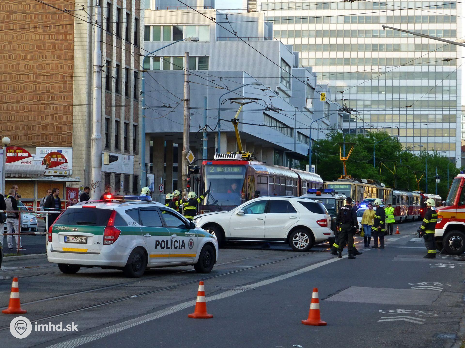 Zrážka električky K2S #7101 s autom v križovatke na Kollárovom námestí zablokovala v podvečer dopravu v širšom centre mesta.