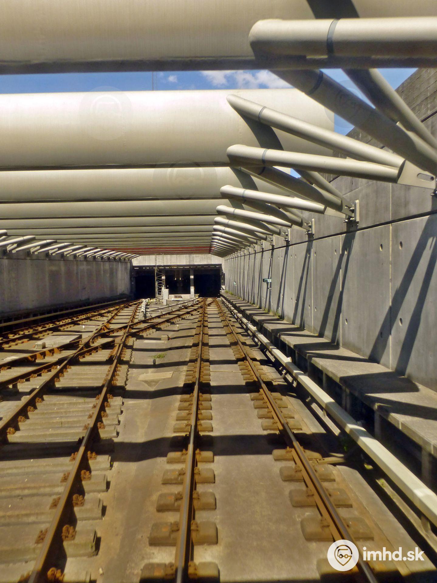 Prechod z nadzemnej časti trate do podzemia pred stanicou Islands Brygge