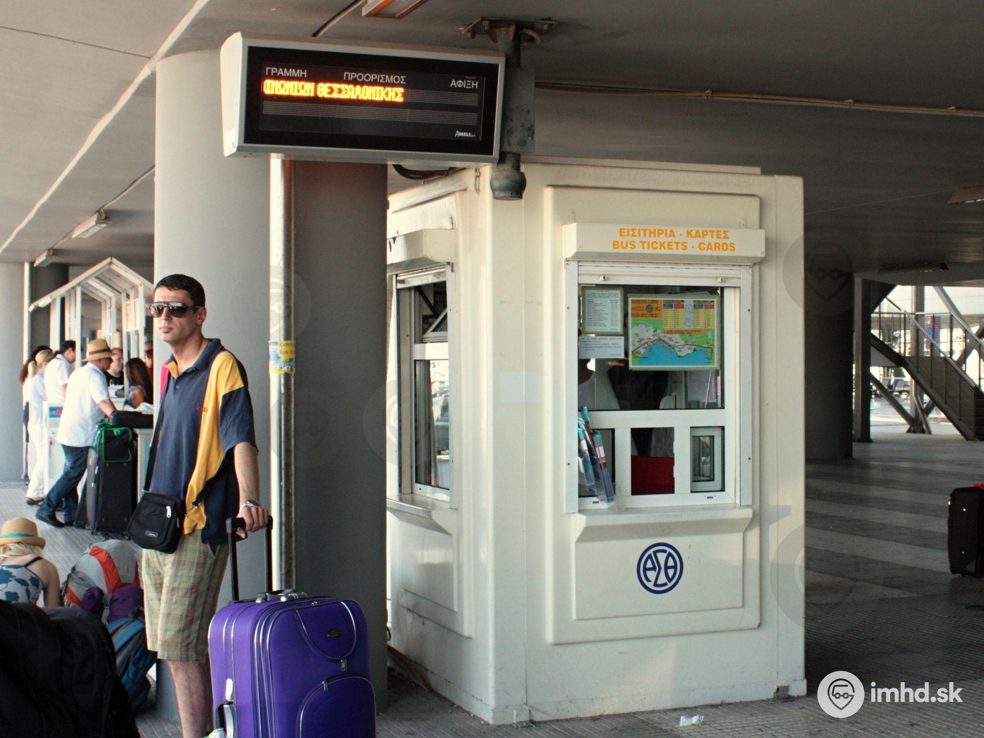 Nástupište autobusov na letisku s predajňou lístkov.