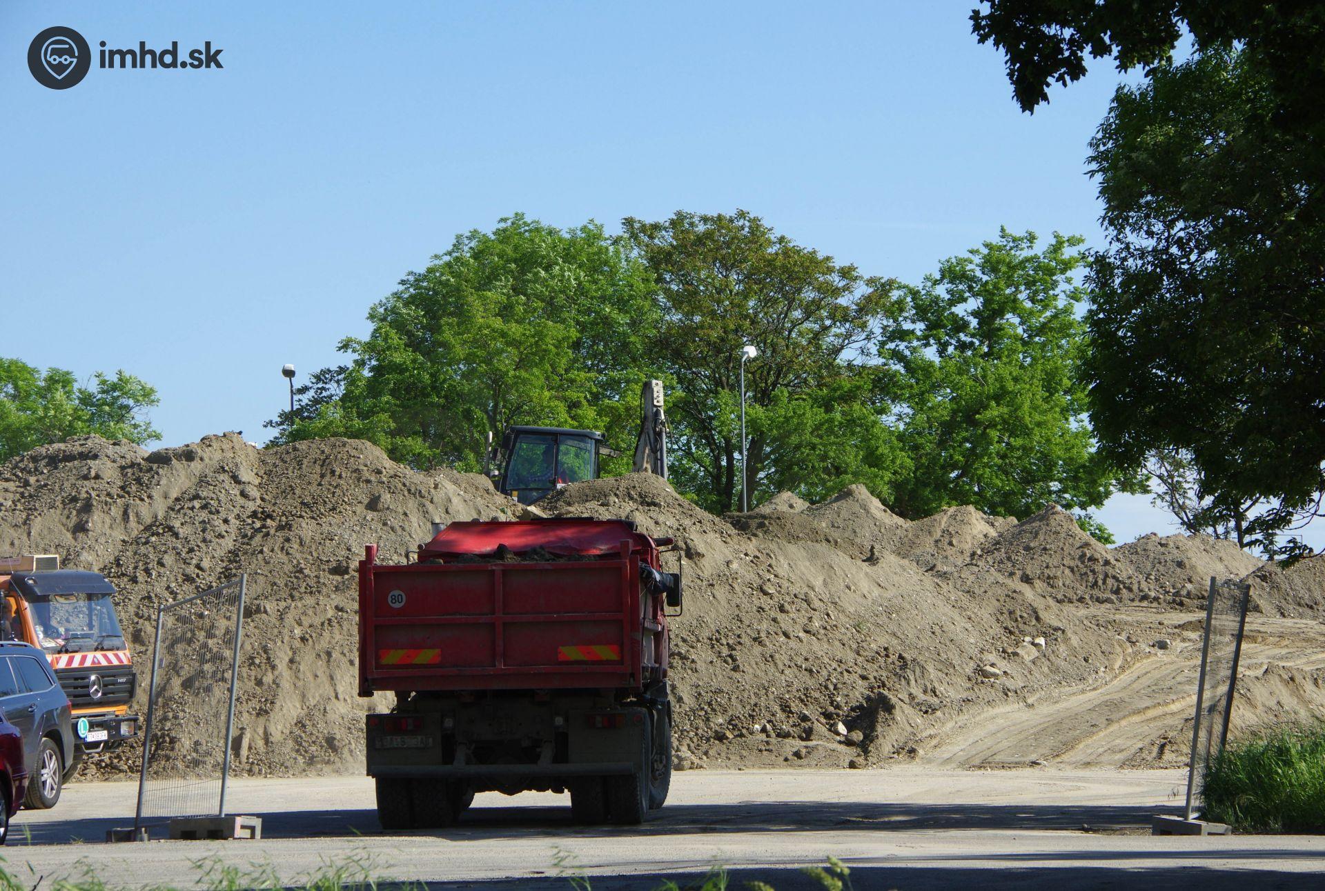 Presúvanie skladiska zeminy od Nám. hraničiarov na parkovisko pri Starom moste.