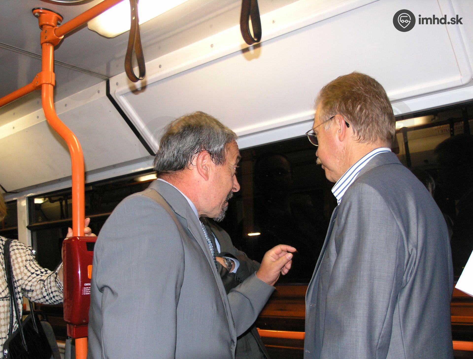 Primátor a námestník primátora v prvom autobuse na Moste Apollo.