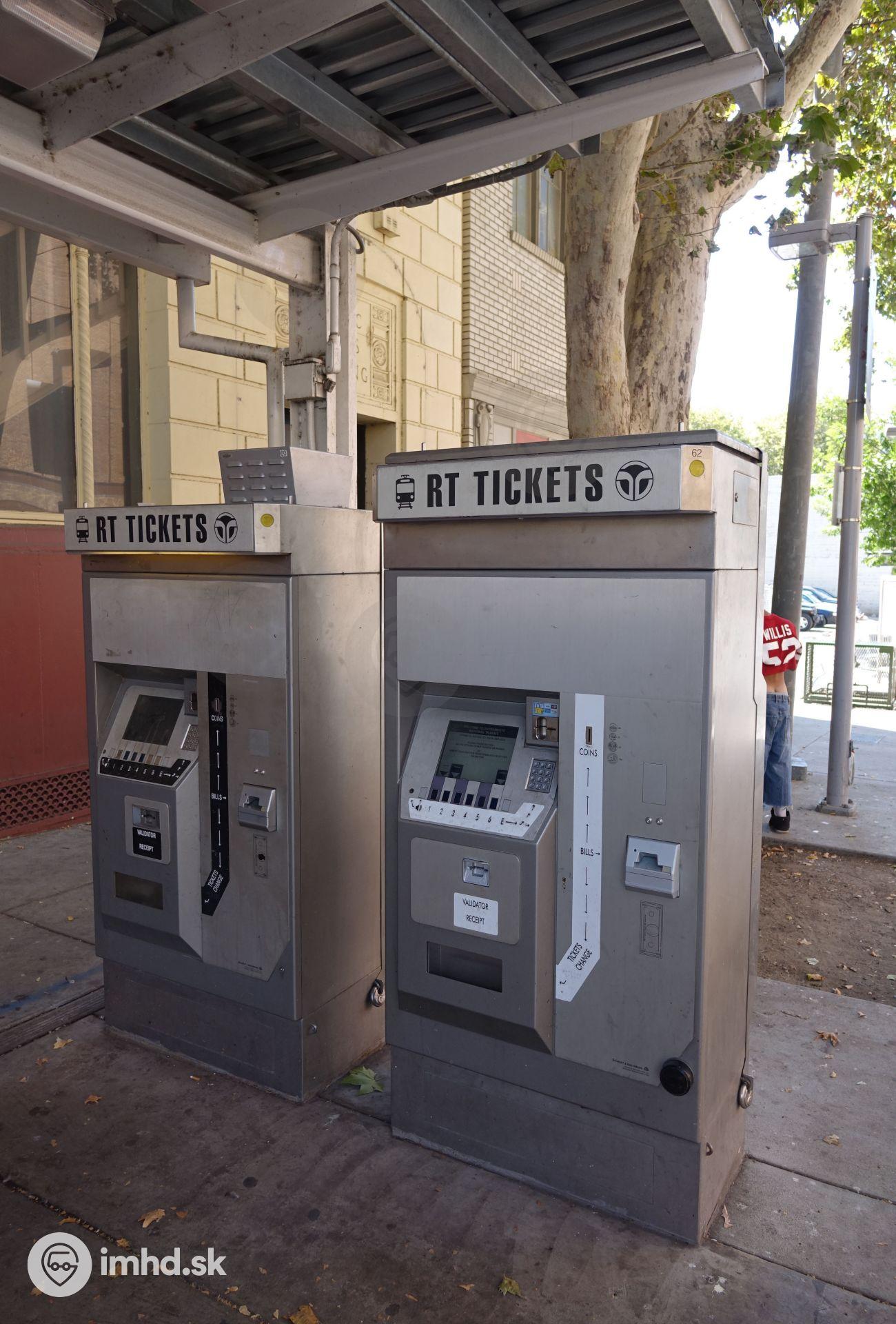 Automaty na cestovné lístky v rámci zastávky tram-trainu v centre hlavného mesta Californie