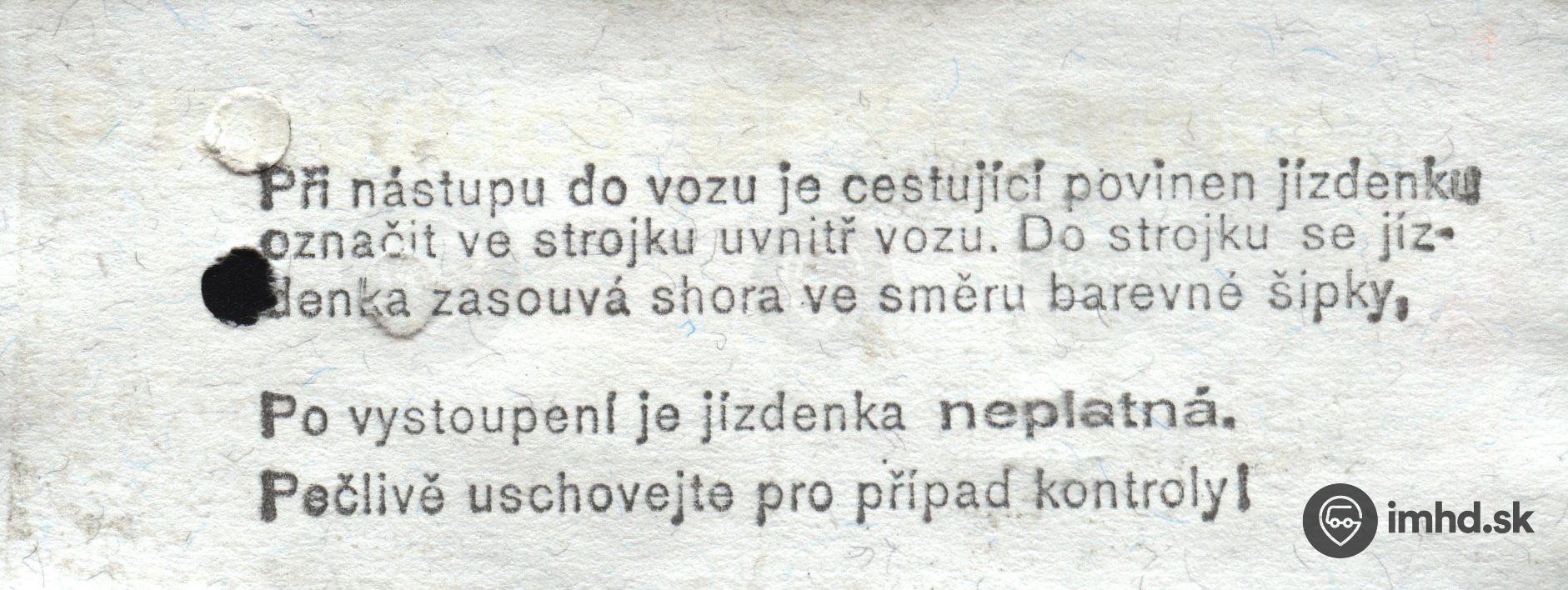 Cestovný lístok na jednu jazdu bez prestupu, 5 Kčs (rub).