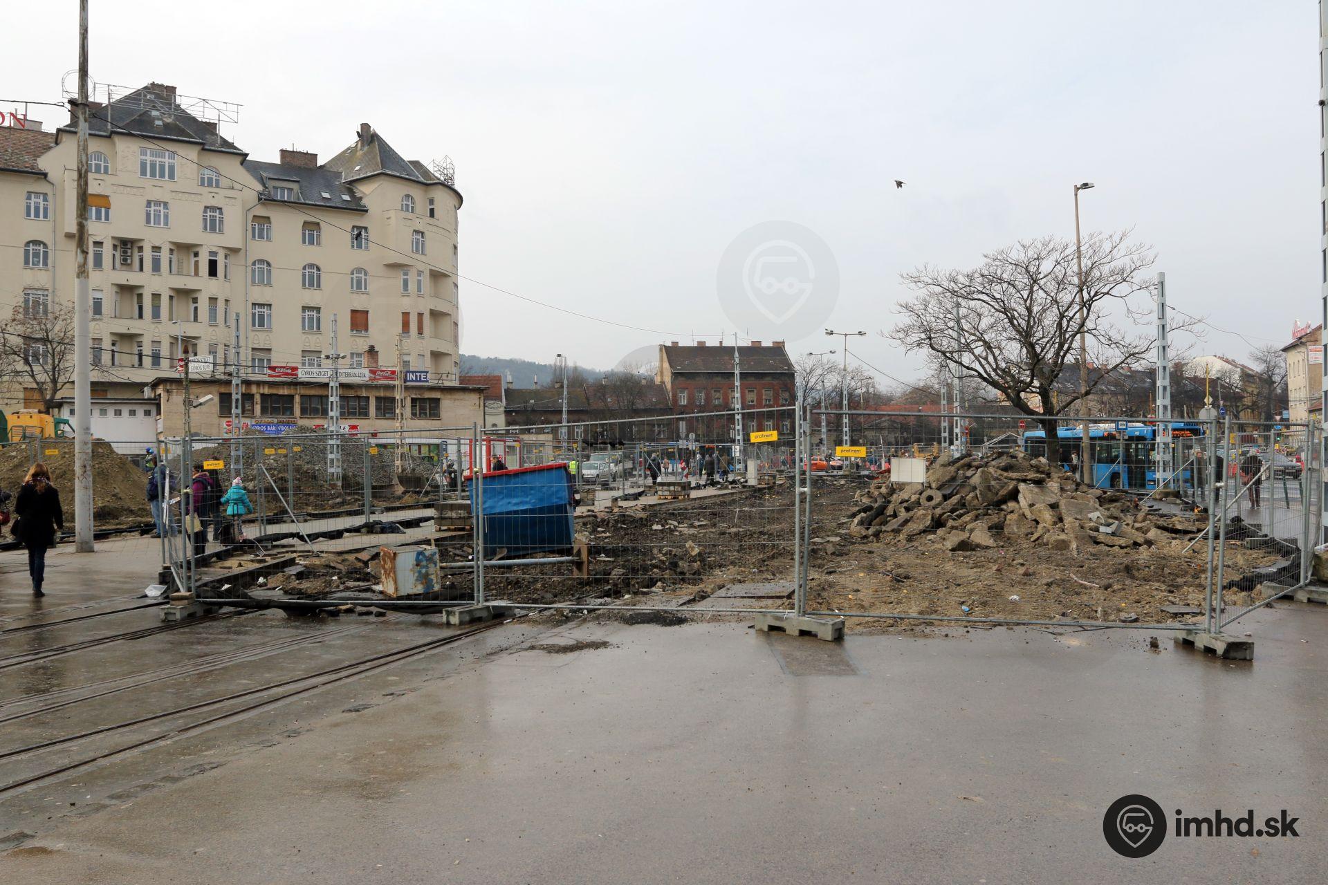 Niekdajšia zastávka liniek 4 a 6 bola ukončená úvraťou a linky obsluhovali obojsmerné vozidlá Combino Supra Budapest NF12B. Koncový úsek zastávky je poldruha mesiaca po začatí rekonštrukcie už minulosťou.