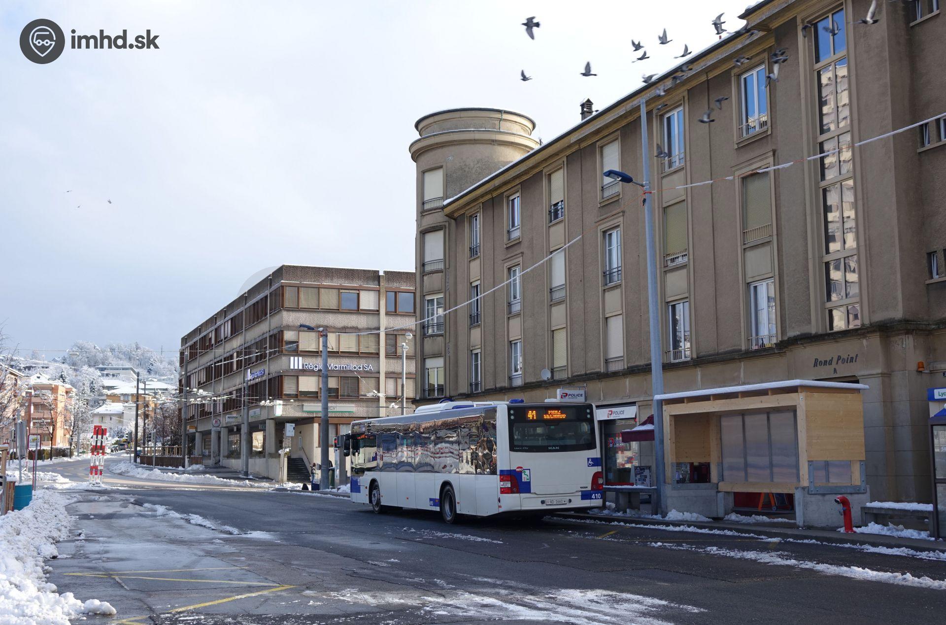 MAN Lion's City na prestavovanom termináli pri stanici metra Sallaz.
