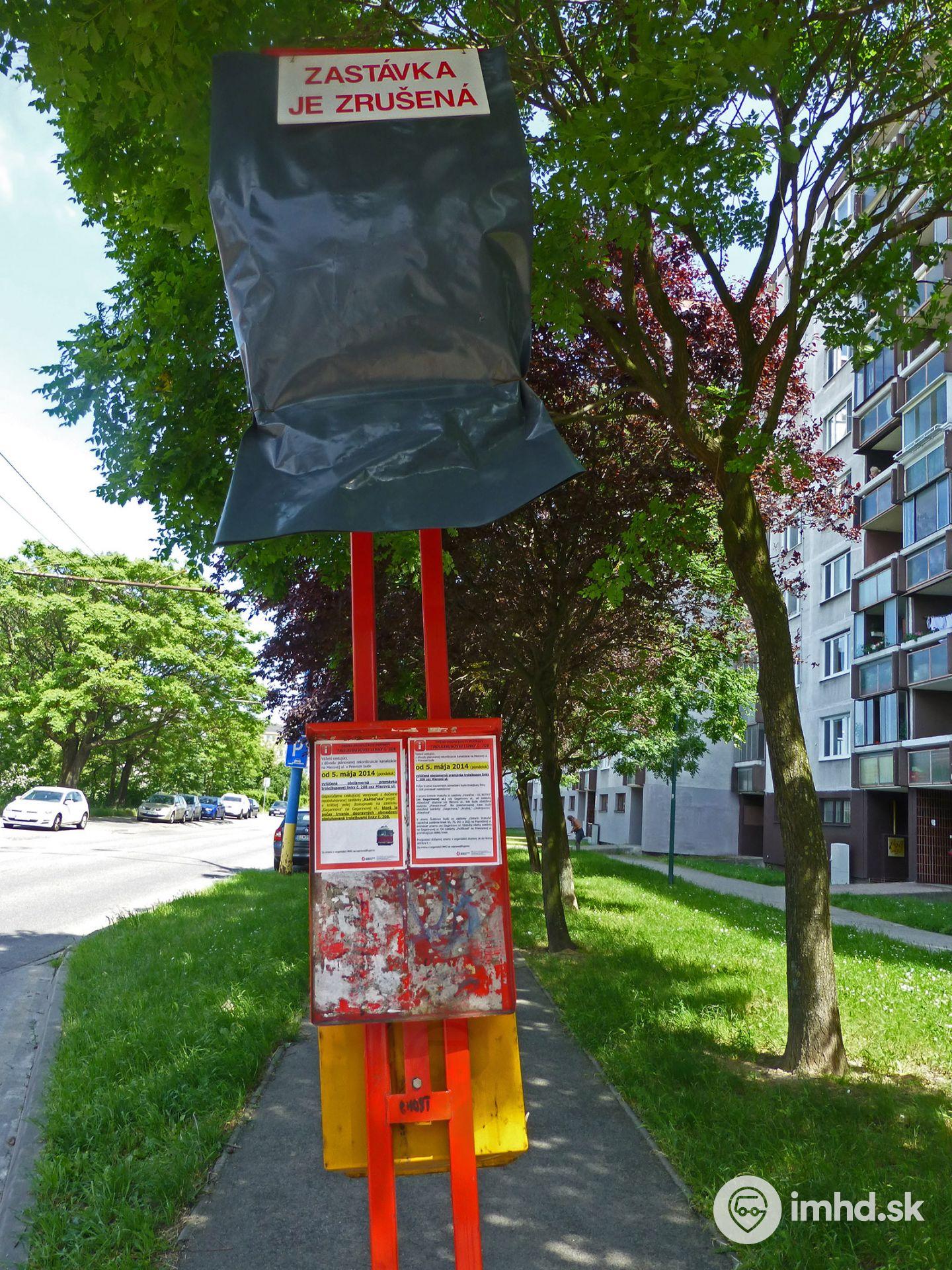 Zrušená zastávka Kaštieľska počas dlhodobej výluky trolejbusov na Mierovej ulici.