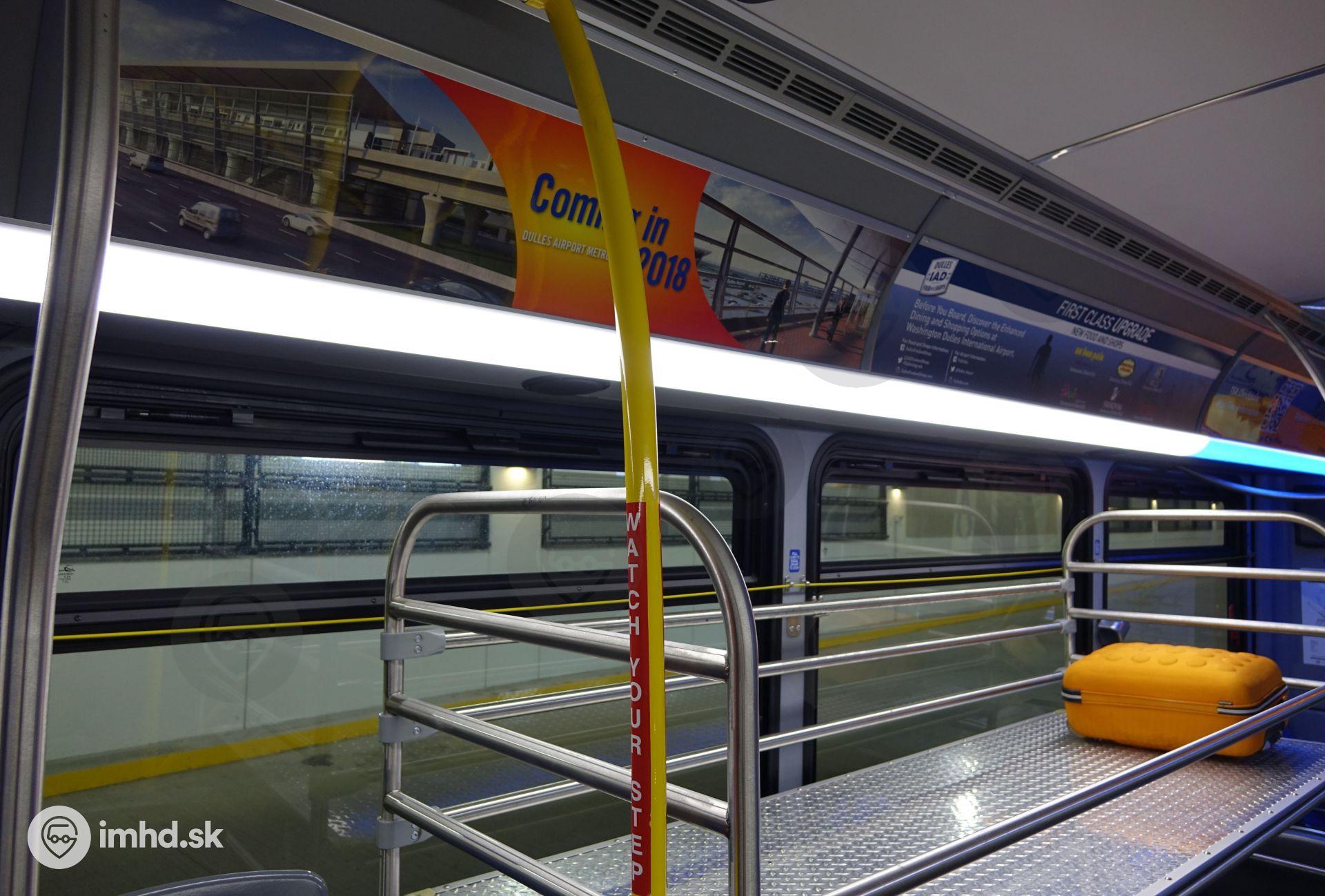 V autobuse na letisko sa nachádza reklama prezentujúca plánované predĺženie metra na letisko IAD v roku 2018