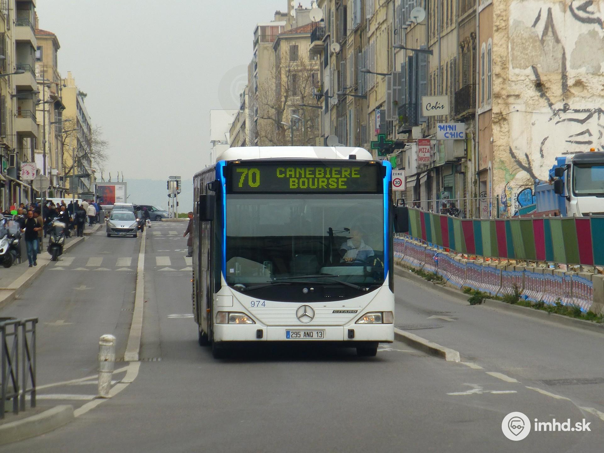 Mercedes-Benz Citaro #974 vo vyhradenom jazdnom pruhu uprostred Avenue Camille Pelletan.