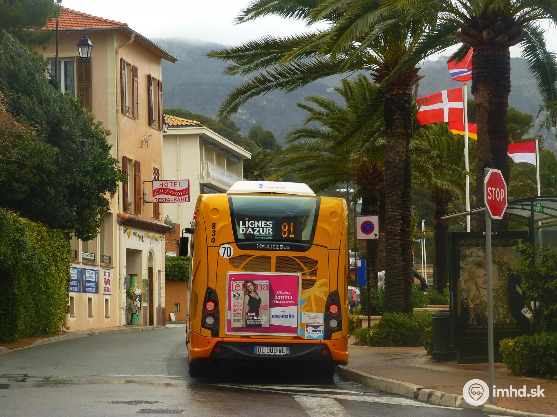 Heuliez GX 137 L #834 na konečnej pri prístave Port de Saint-Jean v milionárskom letovisku medzi Nice a Monakom.