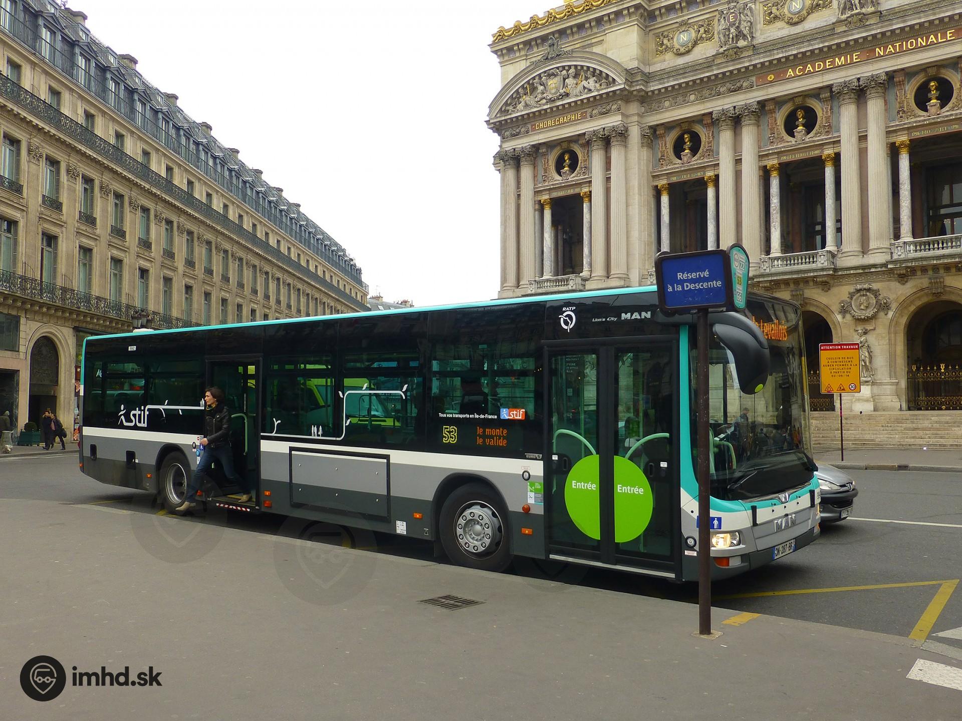 MAN Lion's City na výstupnej zastávke pred budovou opery.