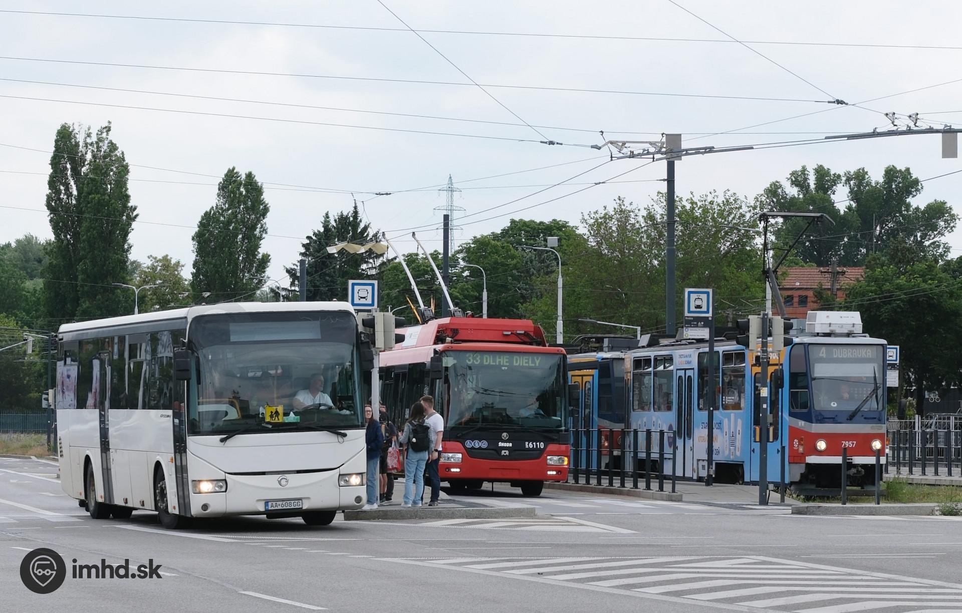 #6110, 7957, #AA-608GG, route 4, 33, Karloveská ul., zastávka Riviéra