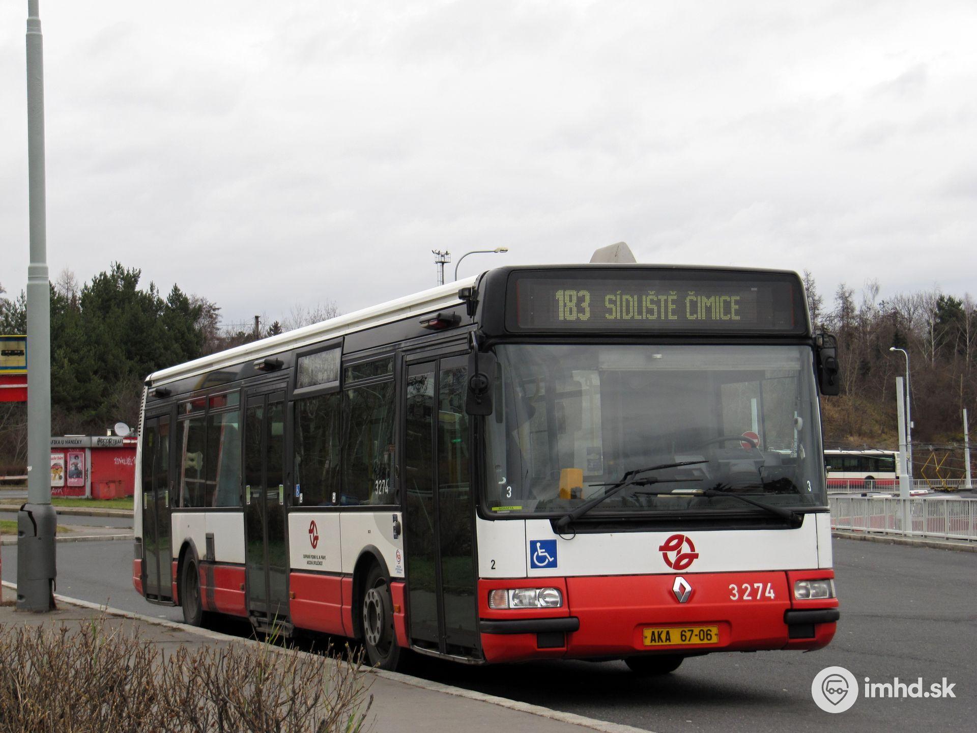 #3274, AKA 67-06, route 183, Ulice Pod stanicí, obratisko Nádraží Hostivař