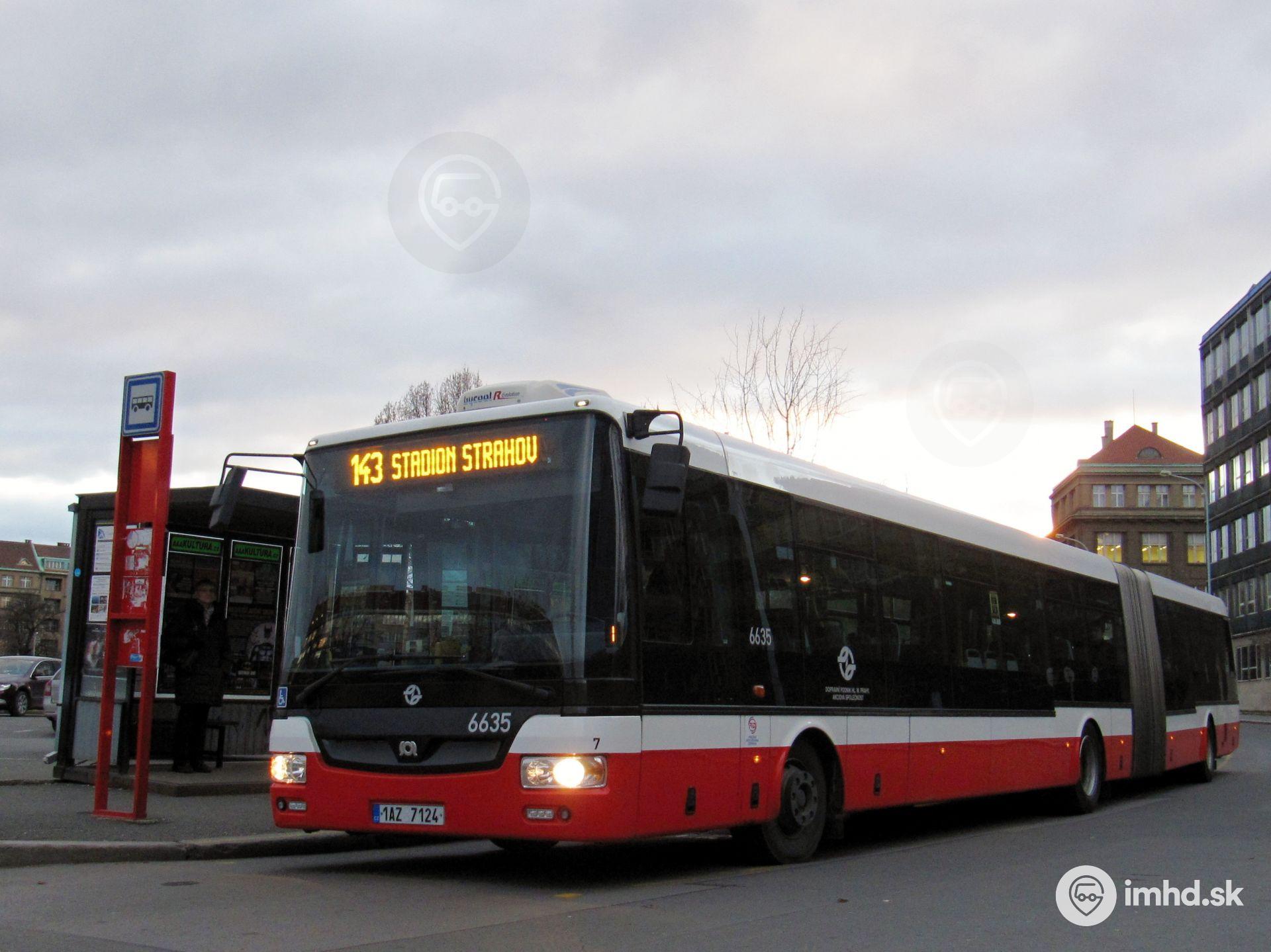 #1AZ 7124, 6635, route 143, Šolínova ul., zastávka Dejvická