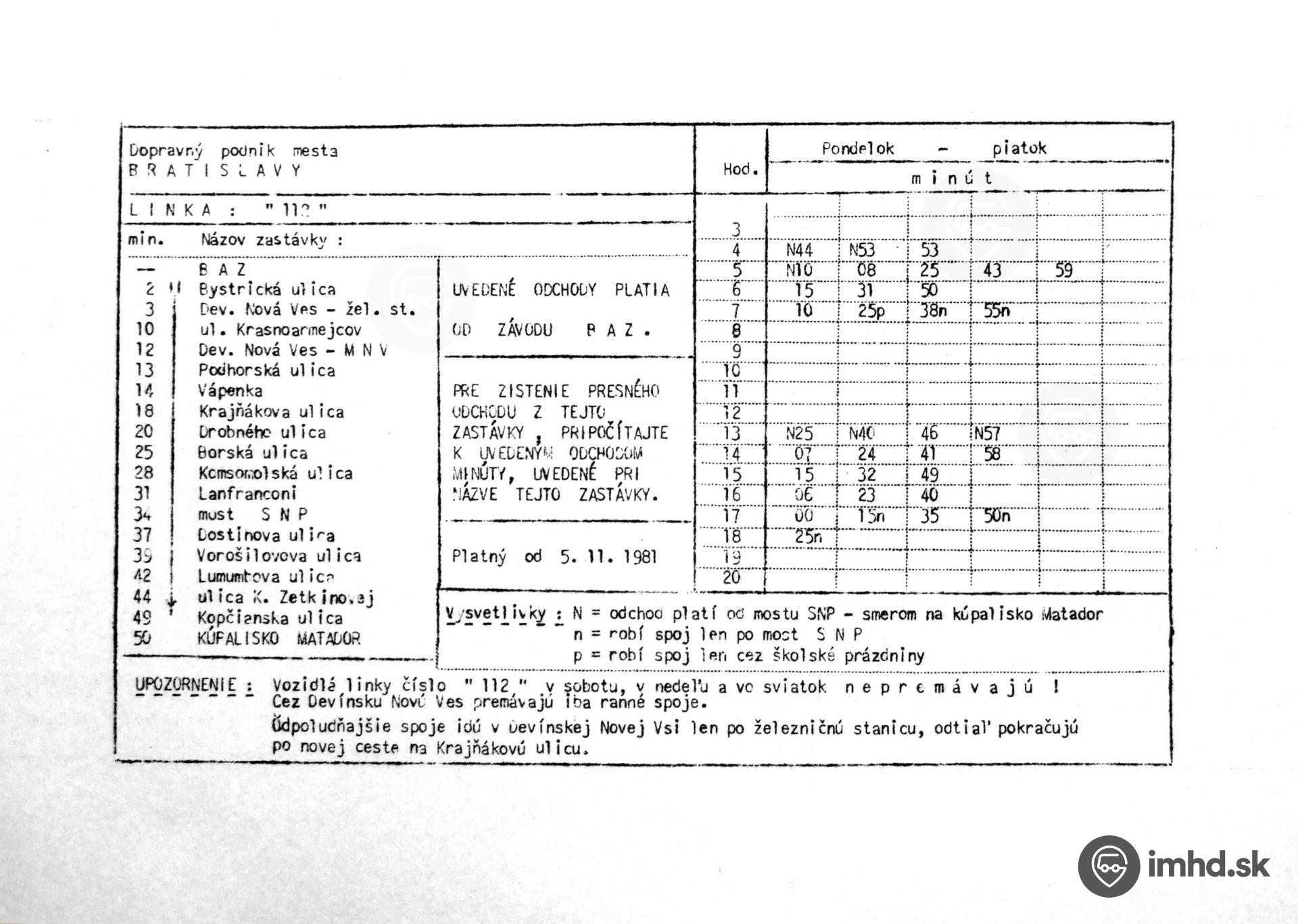 Route 112, Zastávka BAZ